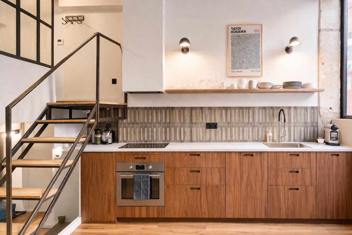 Բարի գալուստ Good Vibes Loft, որը արդյունաբերական ոճով ձևավորված լոֆթ է առաջին հարկում՝ իր անկախ մուտքով փողոցից 🚪, 11-րդ թաղամասի մի հանգիստ փողոցում։ Այս դինամիկ և կոսմոպոլիտ թաղամասի լավագույն ռեստորաններից 🍽️ և բարերից 🍷 ընդամենը մի քանի քայլ հեռու գտնվող այս տարածքը յուրահատուկ մթնոլորտ է առաջարկում, որը ստեղծվել է քարե և աղյուսե պատերով 🧱, փայտե և մետաղական բացահայտված սանդղամուտքերով և ֆուտբոլիկի իրական խաղասեղանով ⚽ ձեր այցի ընթացքում զվարճալի պահեր ապահովելու համար։