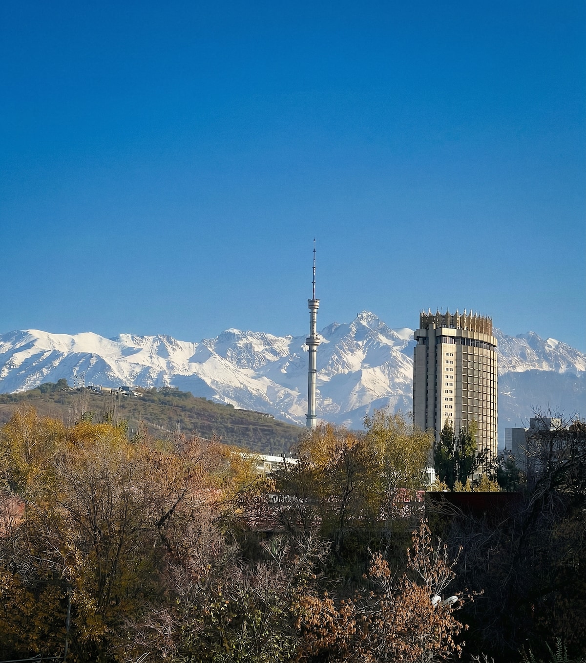 A calm and comfortable apartment in the heart of the city. Located in Almaty’s central Golden Square, this freshly updated 35 sq.m home offers comfort, style, and a glimpse of mountain views. Step outside and explore — Panfilov Promenade, Green Bazaar, Kok-Tobe, and Arbat are just a short walk away. The surrounding streets blend cozy cafés, local restaurants, and quiet parks into the city’s relaxed and authentic rhythm. Shymbulak and Medeu are only a scenic ride away.