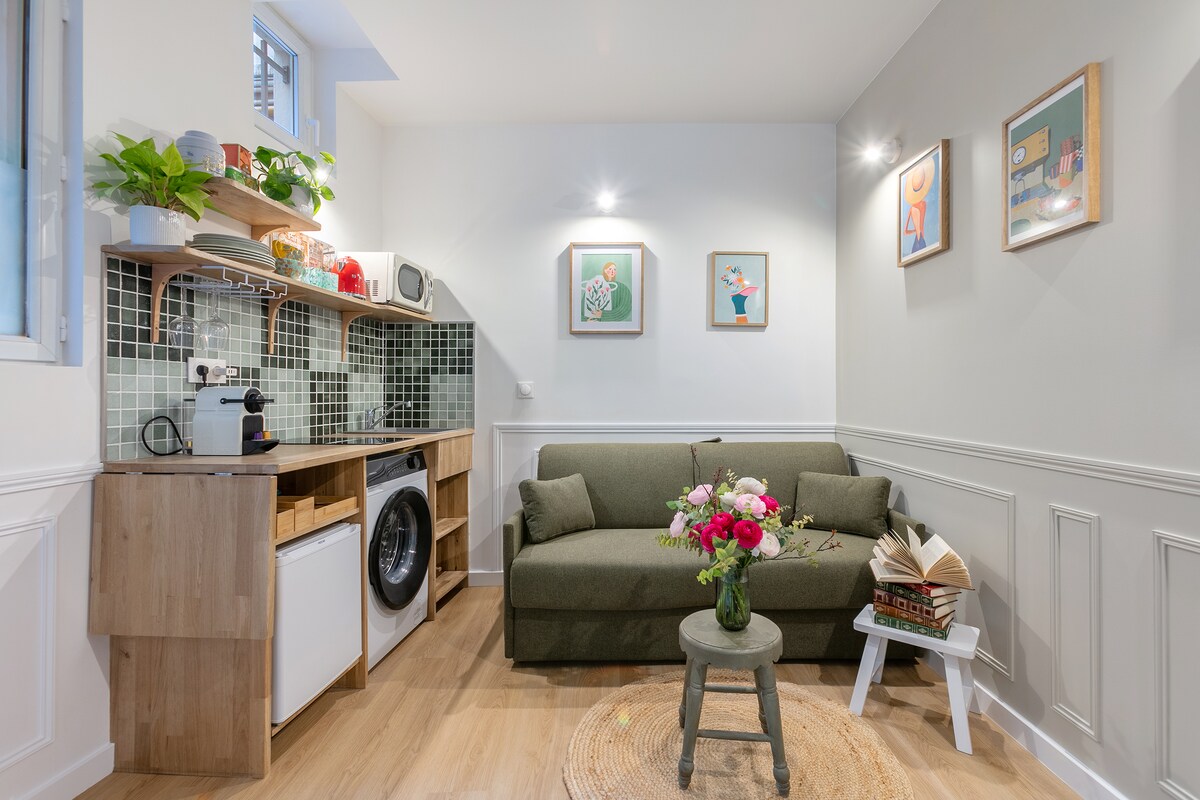Charming, fully renovated and architect designed split level one-bedroom in the historical heart of Paris. Located in the central and trendy 2nd arrondissement. So peaceful ... enjoy your sleep. Short walk away from major spots in Paris Or hop on one of the five Metro lines available at hand. CHECK-IN FROM 2PM (earlier if no other guest is checking out the same day) - LUGGAGE DROP OFF AFTER 10AM Low ceiling on upper floor - not suitable for infants/toddlers (STAIRCASE) - read full description