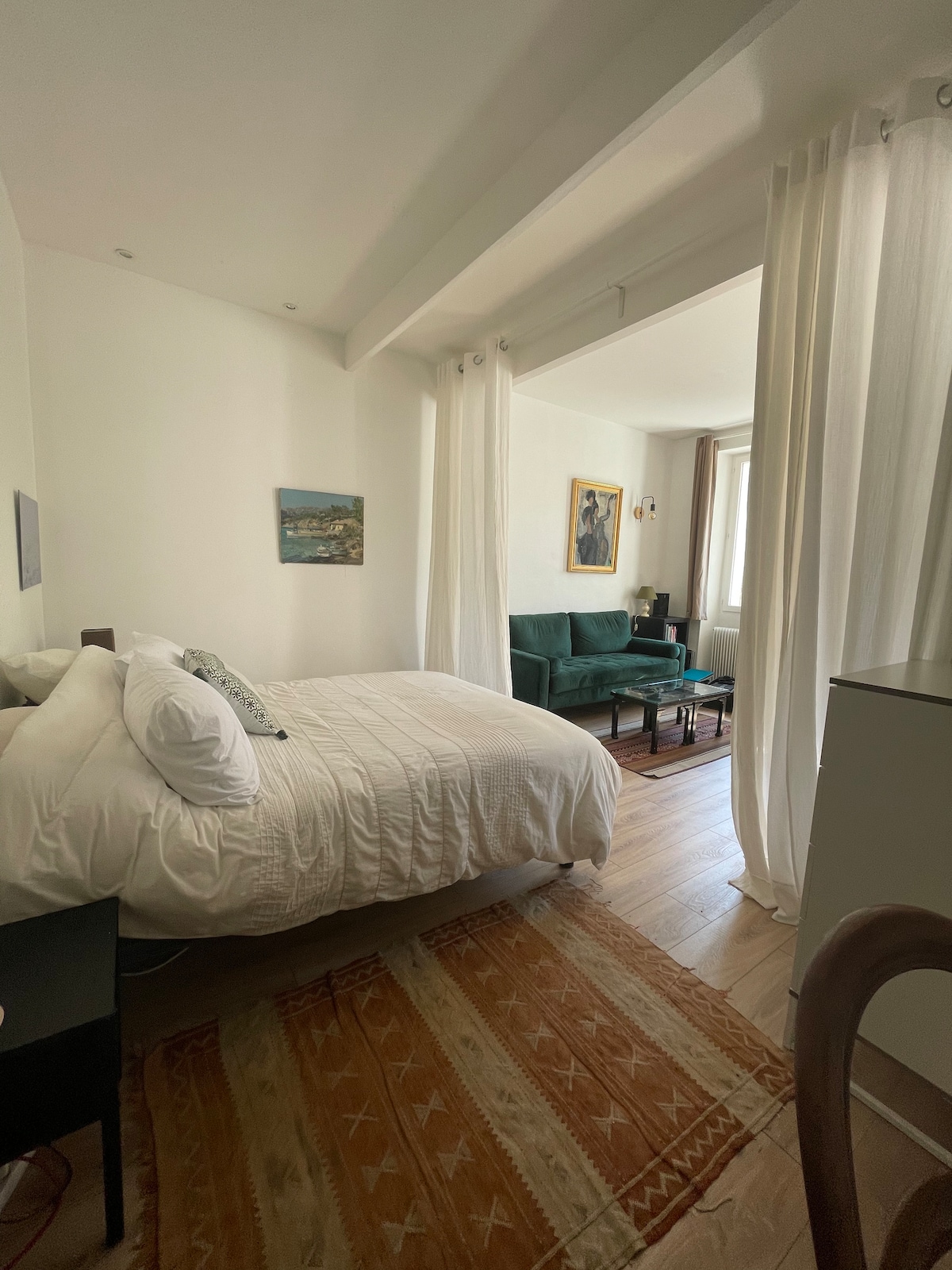 Լուսավոր և էլեգանտ կացարան Մարսելի մեջտեղում ։ Վերանորոգվել է մեծ խնամքով, Մարսիլիայի հմայքով և հարմարավետ տան արդիականությամբ ։ Գտնվում է Սեն - Շարլ երկաթուղային կայարանից և Place Reformés - Canebière - ից 5 րոպեից պակաս հեռավորության վրա ՝ իր իսկական շուկայով, բազմաթիվ խանութներով և շատ լավ ռեստորաններով: Իդեալական տեղակայված է ամբողջ Մարսելում և շրջակայքով փայլելու համար ։ Զուսպ փողոցում, չորրորդ հարկում, առանց վերելակի, դուք հանգիստ կլինեք իր արևոտ պատշգամբով: