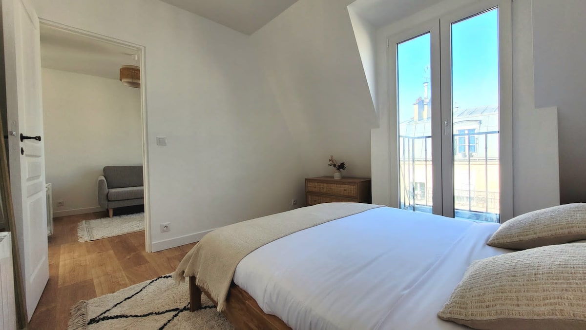 Welcome to your Parisian home away from home! This gorgeous and modern 50sqm apartment combines elegant design, modern comfort, and an unbeatable location : live on the real life set of Emily in Paris ! With two bedrooms, a stylish living area, a fully equipped kitchen and it's own cinema space downstairs, it’s the perfect choice for families or friends who want space and convenience. Enjoy your morning coffee before heading out to discover iconic landmarks by foot or metro.