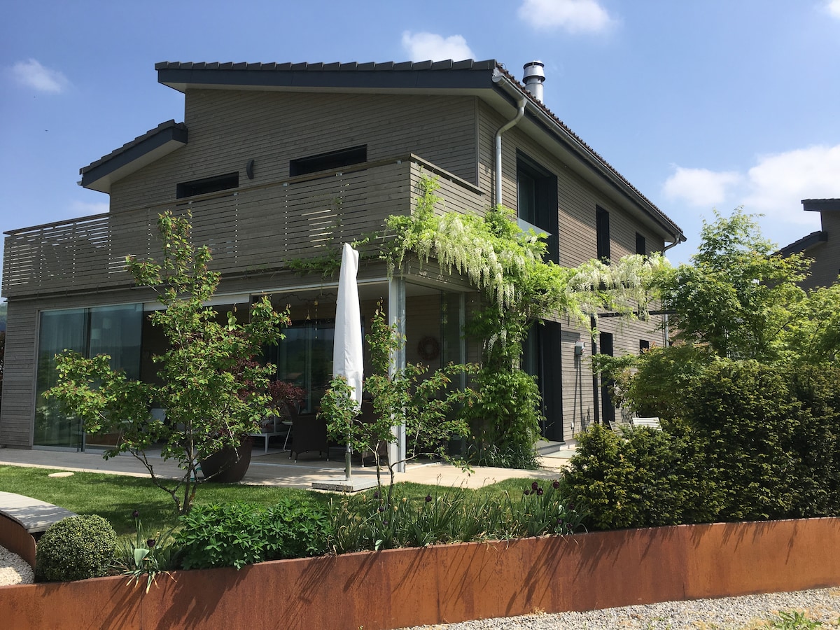 Հանգստանալու և լիցքավորվելու տեղ ՝ լավ 95 քմ մակերեսով գերժամանակակից սարքավորումներով ։ Ամառային գեղեցիկ զով, զուսպ հետնաբակի նստատեղ ծխողների համար Ջակուզի, գոլորշու ցնցուղ և ինֆրակարմիր սաունա պլյուս Մերսման տարածք Հարմար է կարճաժամկետ այցերի կամ արձակուրդների համար ՝ ներկառուցված խոհանոցով և հիմնական սարքավորումներով ։ Արձակուրդ ՝ շաբաթական զեղչ/ ամսական զեղչ Ամառային պայմաններն իմացեք 2025 թվականին ։ Հանգստի գոտու կենտրոն Բադ Ցյուրզախ ։ Ջերմային լոգարանին մոտ (10 րոպե ոտքով), Ցյուրիխին (30 կմ), Բազելին (45 կմ), Լյուցեռնին (50 կմ) և սահմանին մոտ DE ։