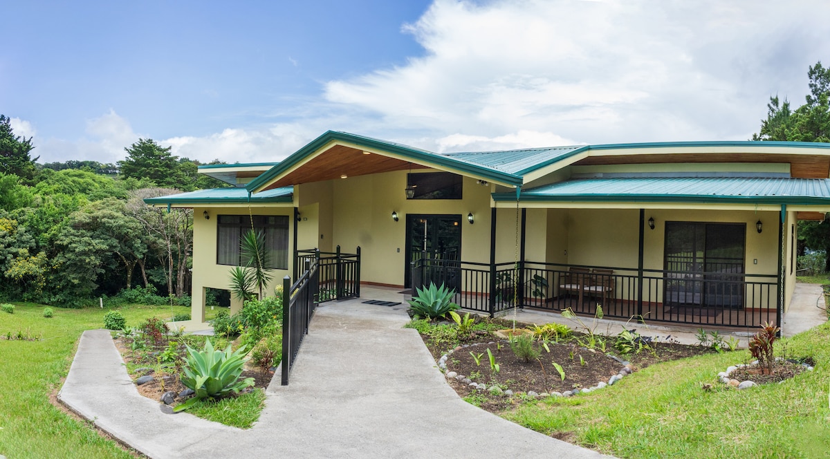 Delight yourself with the spectacular landscapes and comfort of our house located at just 6 miles (10km or 25 minutes) away from Monteverde downtown. This brand-new house is immersed in a 12-acre property full of nature where you can enjoy of a jacuzzi, natural springs water pool, hiking trails and the tranquility and privacy that this unique property offers. Take into account that most of our guests regret of having a short stay (2 nights) at our place.