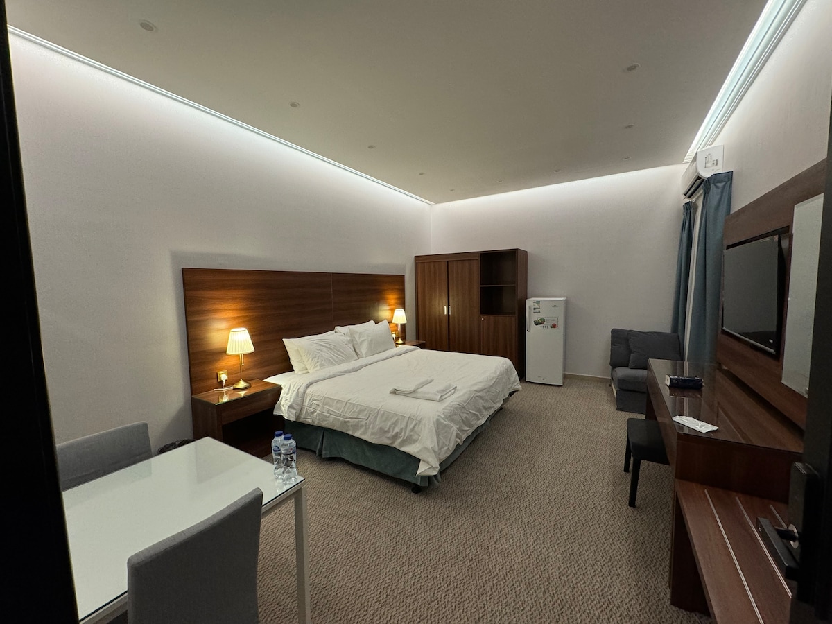 Ննջասենյակի, լոգասենյակի ժամանակակից կացարան ՝ խելացի մուտքի համակարգով ։ Հագեցած է բոլոր ծառայություններով ՝ արագ ինտերնետ, օդորակիչ, սուրճի բալզամներով հագեցած մինիբար, թեյ և խելացի էկրան Տեղադրության առանձնահատկությունները ՝ - Աբդուլազիզ թագավորի համալսարանին, երկաթուղային կայարանին, Սալամ մոլին, Ալ - Անդալուս մոլին և Սուլեյման Ալ Հաբիբի հիվանդանոցին մոտ: Հարմար է ՝ - Կարճ այցելություններ, գործնական ուղևորություններ կամ ուսանողներ