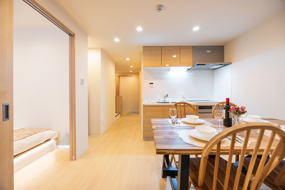 50㎡ Japanese-Style Room for Family or Group ◆Room Features 2 Tatami Bedrooms Separate Kitchen Separate Toilet & Bathroom Accommodates up to 6 guests ◆Excellent Location Only 180 meters from the metro station 6 major rail lines within 500 meters: Subway Midosuji Line Subway Yotsubashi Line JR Lines (30 minutes to Universal Studios Japan) Nankai Lines (45 minutes direct to the airport) Easy Access to Main Attractions Shinsaibashi, Namba, Dotonbori, and Tennoji are all within walking distance