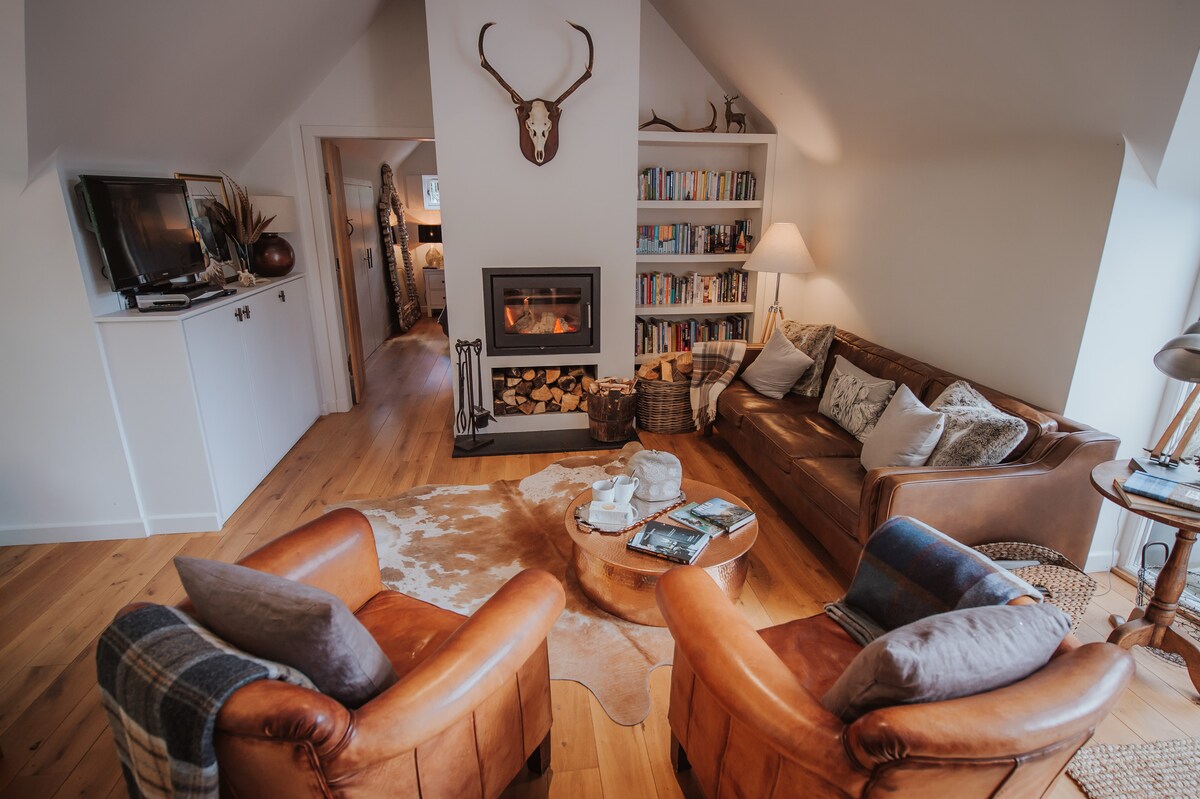 2 1/2 is situated in the quiet village of Aboyne, the gateway to the Cairngorms National Park. This self-contained house is bright and welcoming, has an open plan living area, log burning fire, garden space and free Wifi. Hill walk, wild-swim or mountain bike straight from the door. We offer a bike wash station and secure lock up for your bikes. Play golf or visit our local distilleries. Discover Royal Deeside's rich history. What ever you plan for your break, come back and relax at 2 1/2.