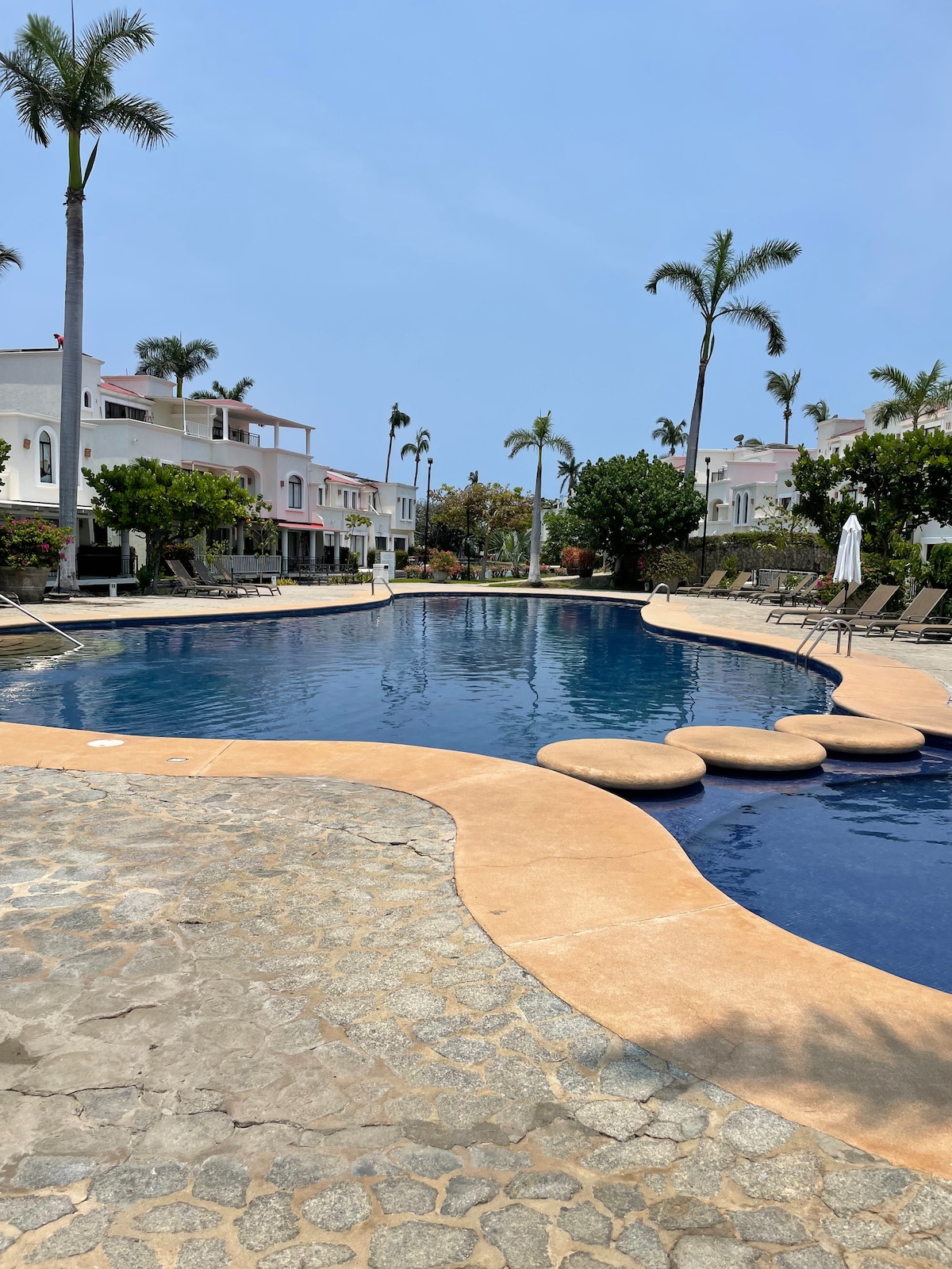 Relájate en este espacio tan tranquilo y elegante llegando a un espacio privado para tu familia y seguro con seguridad las 24 horas cuenta con tres recamaras todas con aire acondicionado, sala con aire acondicionado, comedor, cocineta, patio de servicio, 1 baño y medio y en otra ubicación se tiene acceso a un Club de Playa privado para 6 personas que se encuentra a 8 minutos del condominio con acceso a la playa la alberca 2 son las albercas que se encuentran en el Club de Playa