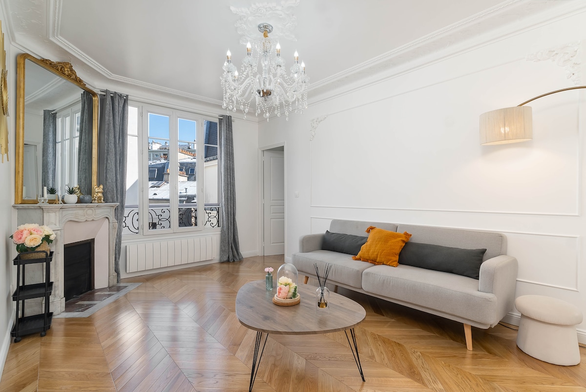 This unique parisian style apartment is located in a high standing building in the heart of Marais. You have the entire apartment to yourself. No one else will be there during your stay. Very elegant. Decorated by a famous interior designer Wooden floor, antique moldings, fire place. Super bright and comfortable. Quiet and spacious with a huge 40m2 living room. Masterpieces of contemporary art. Stunning view from the balcony Perfect for couples celebrating a romantic event or business trip
