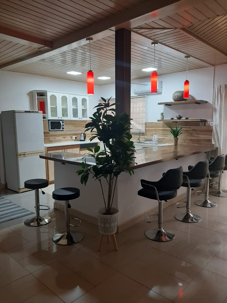 Beautiful, elegantly furnished apartment at Babasab Resort in the hills of Kwabenya, near Ashesi University. Enjoy premium amenities including a swimming pool, bamboo hut with gym, table tennis and foosball, plus a rooftop terrace with panoramic views and BBQ. Features include home theatre, AC, fast Starlink WiFi, solar power and alarm system. Perfect for a relaxing, secure and comfortable stay in a peaceful and scenic location.