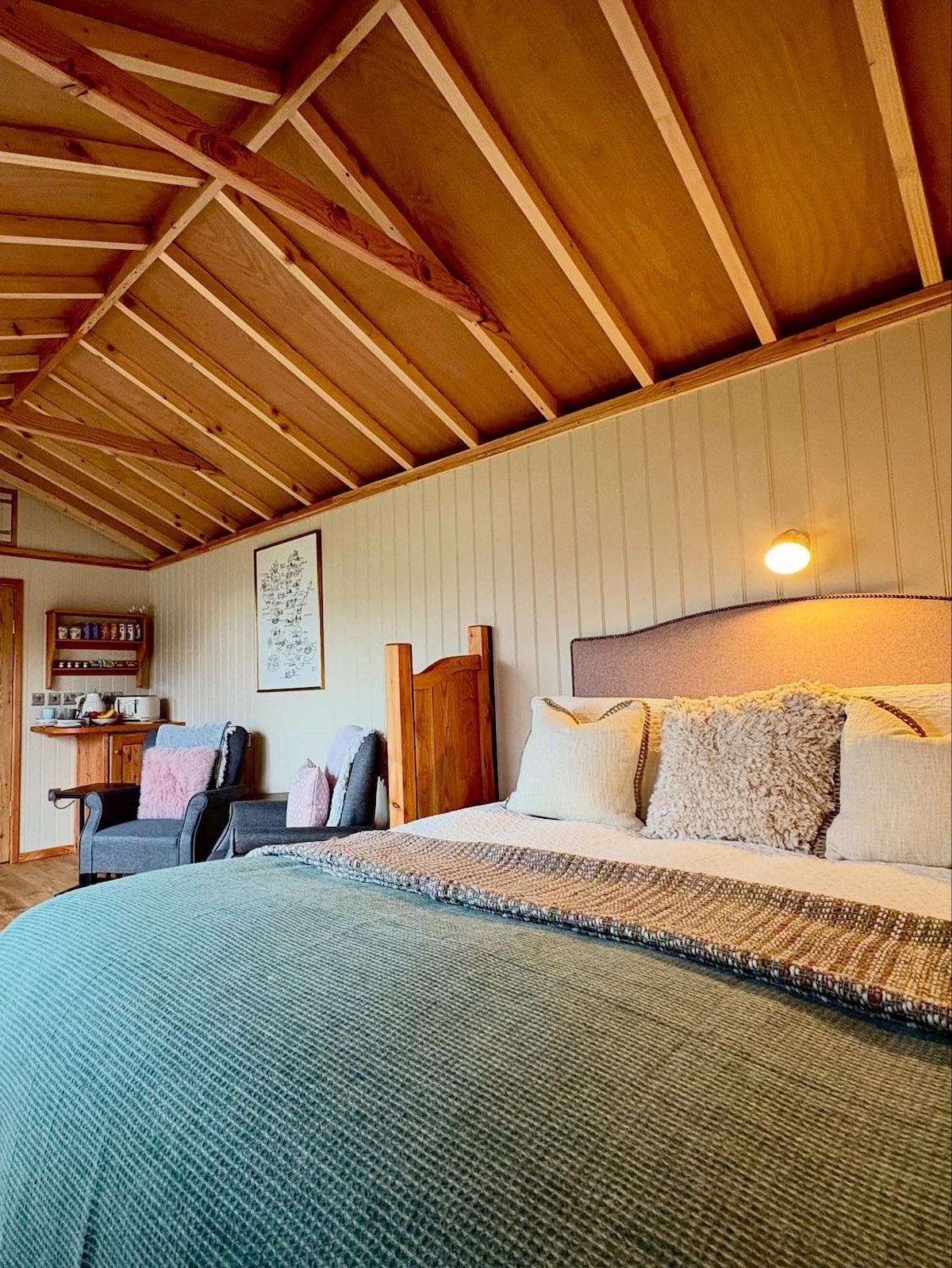 Ուրախ ենք մեր հյուրերին առաջարկել 5* փորձառություն մեր հատուկ կառուցված տնակում ։ Մենք սերտորեն համագործակցեցինք մեր ընկերների հետ մրցանակի արժանացած Corr Cabins - ում, որպեսզի ստեղծենք անխռով եւ շքեղ հեռավորության վրա Skye - ի գեղեցիկ կղզում: Տնակ Beo - ն գտնվում է մեր տան կողքին և հիասքանչ տեսարան է բացում դեպի Պորրի ծովածոցը և դեպի Սթորրի Ծերունին ՝ նկարի ամբողջական պատուհանից: Տնակն ամբողջությամբ հագեցած է փայտի վառվող վառարանով, խոհանոցիկով, շքեղ երկտեղանի մահճակալով և լոգասենյակով ։
