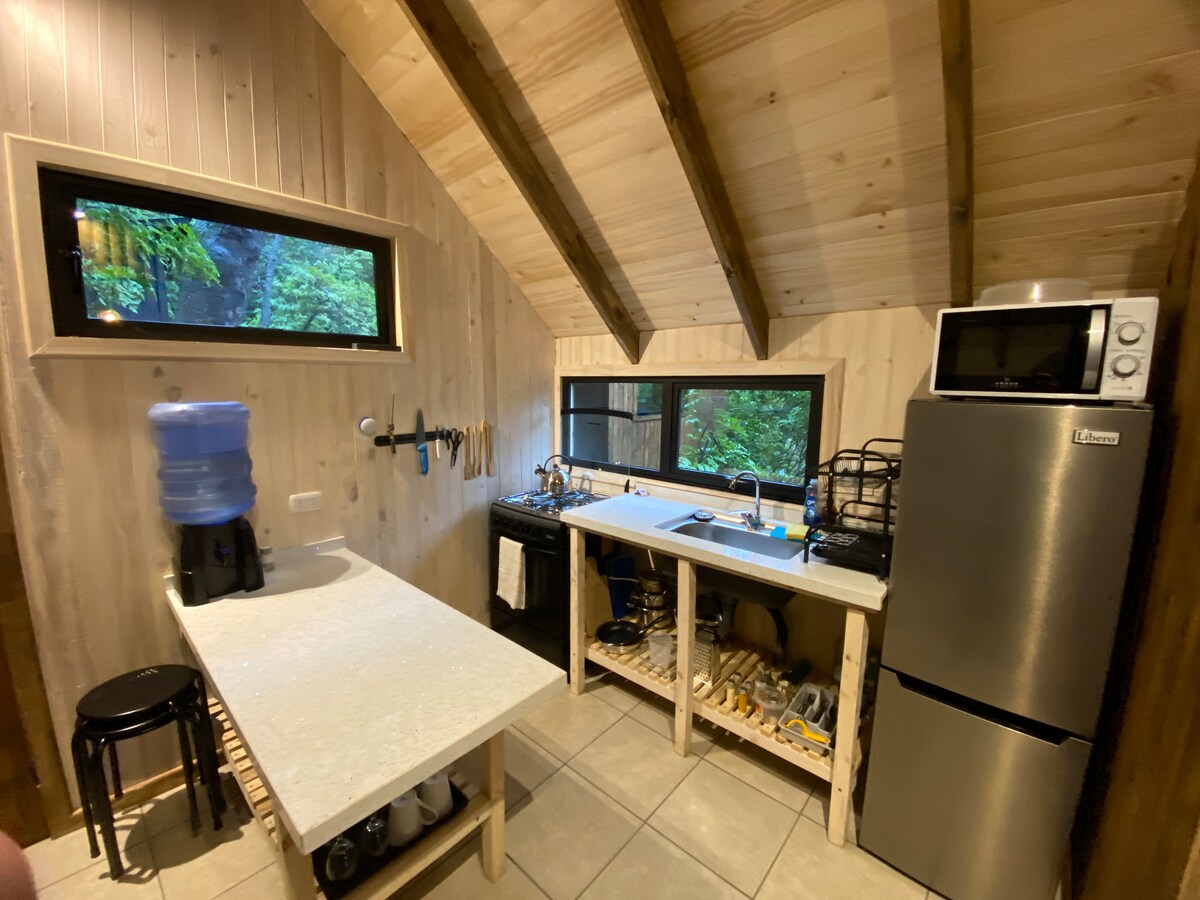 Vive una experiencia de desconexión total en nuestra tinyhouse inmersa en el bosque nativo de Vilches Alto. La cabaña está rodeada de flora y fauna autóctona, con una vista abierta a la naturaleza. Ideal para escapadas románticas, aniversarios o simplemente para reconectar. Debido a que nuestra cabaña se encuentra en medio del bosque el acceso es guiado por nosotros para asegurar una experiencia organizada, segura y tranquila.