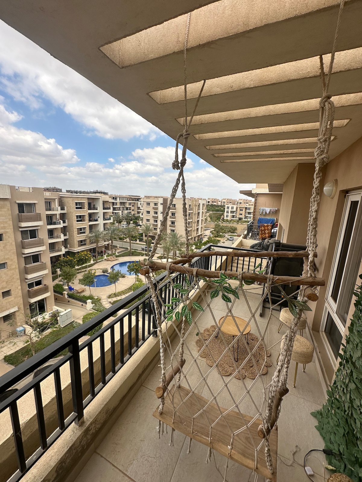 Ժամանակակից և լուսավոր 3 սենյականոց բնակարան Նոր Կահիրեում. կատարյալ է հանգստի համար Բարի գալուստ ձեր հանգիստը Նոր Կահիրեում: Այս ժամանակակից բնակարանում կա 1 գլխավոր ննջասենյակ ՝ լոգասենյակով, 2 ննջասենյակ, 1 բաց լոգասենյակ և պատշգամբ ՝ փարթամ այգիների և լճերի ցնցող տեսարաններով ։ Վայելեք գեղատեսիլ քայլուղիներ, լճեր, սպորտային ակումբ ՝ թենիսով և պադելով, ինչպես նաև ակումբ և սուպերմարկետ: Կահիրեի փառատոնից ընդամենը մի քանի րոպե հեռավորության վրա ՝ առաջարկելով լավագույն ռեստորաններն ու խանութները: Ամրագրեք հիմա և լիցքաթափվեք ։