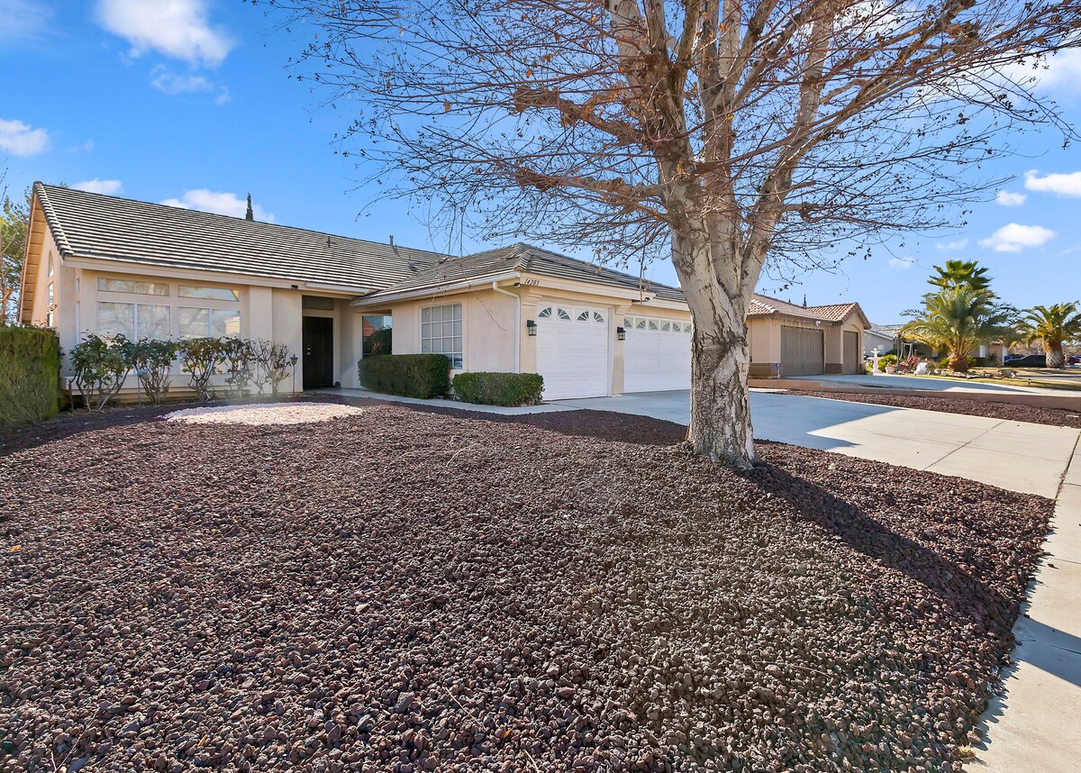 Հանգստացեք աշխատանքի կամ խաղի համար։ -- Հանգիստ, խաղաղ, անապատային սեփականություն -- Հանգիստ ։ Անվտանգ կայանատեղի փողոցում ։ Արագ Wi - Fi ։ Լվացքի մեքենա, չորանոց ։ Գեղեցիկ է ներսից և դրսից ։ Արմավենիներ, վարդեր, արևածագեր և մայրամուտներ ։ Լեռան տեսարան ։ Լողավազան ։ ԱՌԱՆՁԻՆ մուտք ։ Netflix, Amazon Prime ~Բարբեքյու ~Սուրճ~Խոհանոց։ Ուղևորվեք դեպի ՝ Mall, HWY 15 և 395 ։ Մթերային խանութ, Walmart, Denny's, Starbuck's և ավելին ։ 3 ժամ ՝ Վեգաս ։ Ժամերը ՝ Լոս Անջելեսի տեսարժան վայրեր, Դիսնեյ ։ 1,5 ժամ ՝ Բիգ Բեար, 35 րոպե ՝ Ռայթվուդ, 35 րոպե ՝ Apple Valley ։ Երկարաժամկետ այցեր։