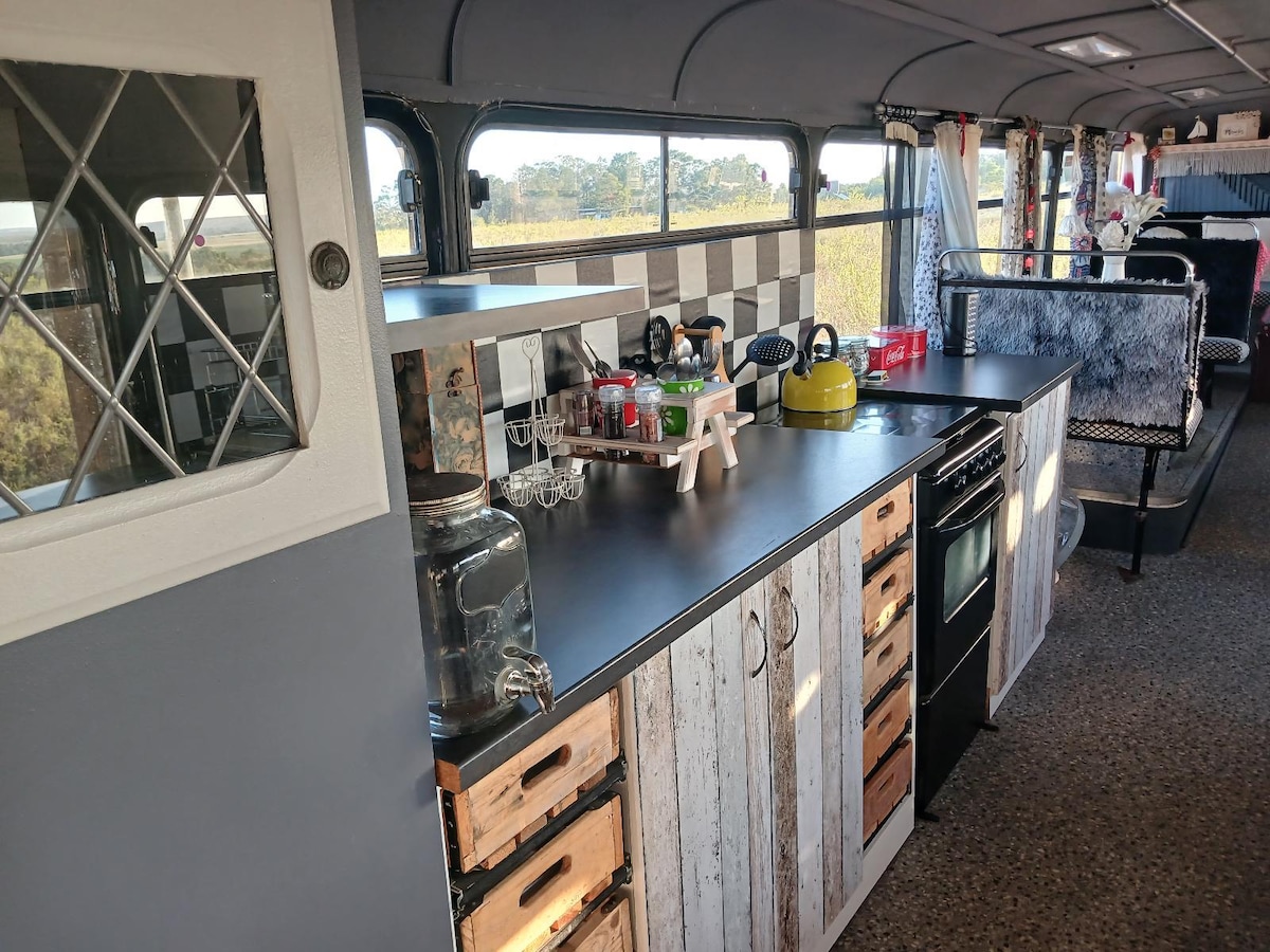 Magic Bus is a well styled old school bus that has been renovated into a cozy home. A unique place for outdoor enthusiasts to unwind, relax and reset. Equipped with all the necessities for an chilled out stay to escape to tranquility!