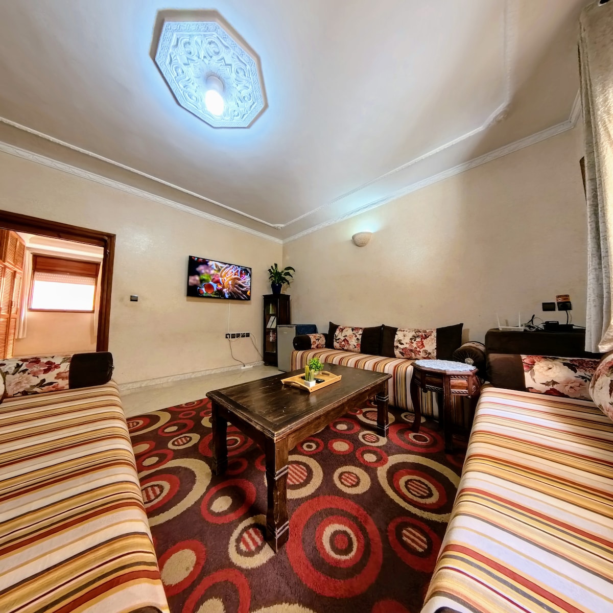 Վերջերս վերանորոգված՝ մարոկկոյական ռիադի նրբագեղ ոճով, այս բնակարանը համատեղում է ինքնատիպությունն ու ժամանակակից հարմարավետությունը։ Այն գտնվում է Ագադիրում՝ իդեալական վայրում․ մեքենայով կամ տաքսիով 10 րոպե հեռավորության վրա է Ադրար մարզադաշտից, 5 րոպե հեռավորության վրա՝ շուկայից և 10 րոպե հեռավորության վրա՝ լողափից և հիմնական տեսարժան վայրերից։ Ընդարձակ, լուսավոր և ջերմ, այն կատարյալ է յուրօրինակ և անմոռանալի փորձառություն փնտրող ընտանիքների, զույգերի կամ ընկերների համար։ ✨ Ամրագրեք հիմա՝ բացառիկ այցի համար։