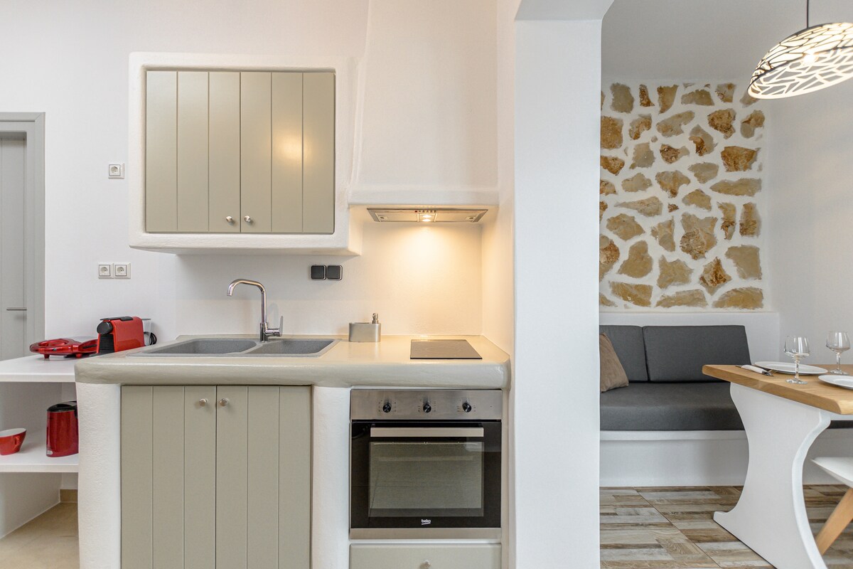 A spacious studio with sea views and a private hot tub, just steps from the beach. Flat Poseidon, part of Enosis Apartments, is located at Agia Anna of Naxos, steps from the long sandy beach and the crystal clear blue waters. The studio offers a generous interior layout and a private balcony with a sea view and a private hot tub, combining comfort and outdoor living. Designed in traditional Cycladic style, it is an ideal choice for guests who value space, privacy, and easy access to the beach.