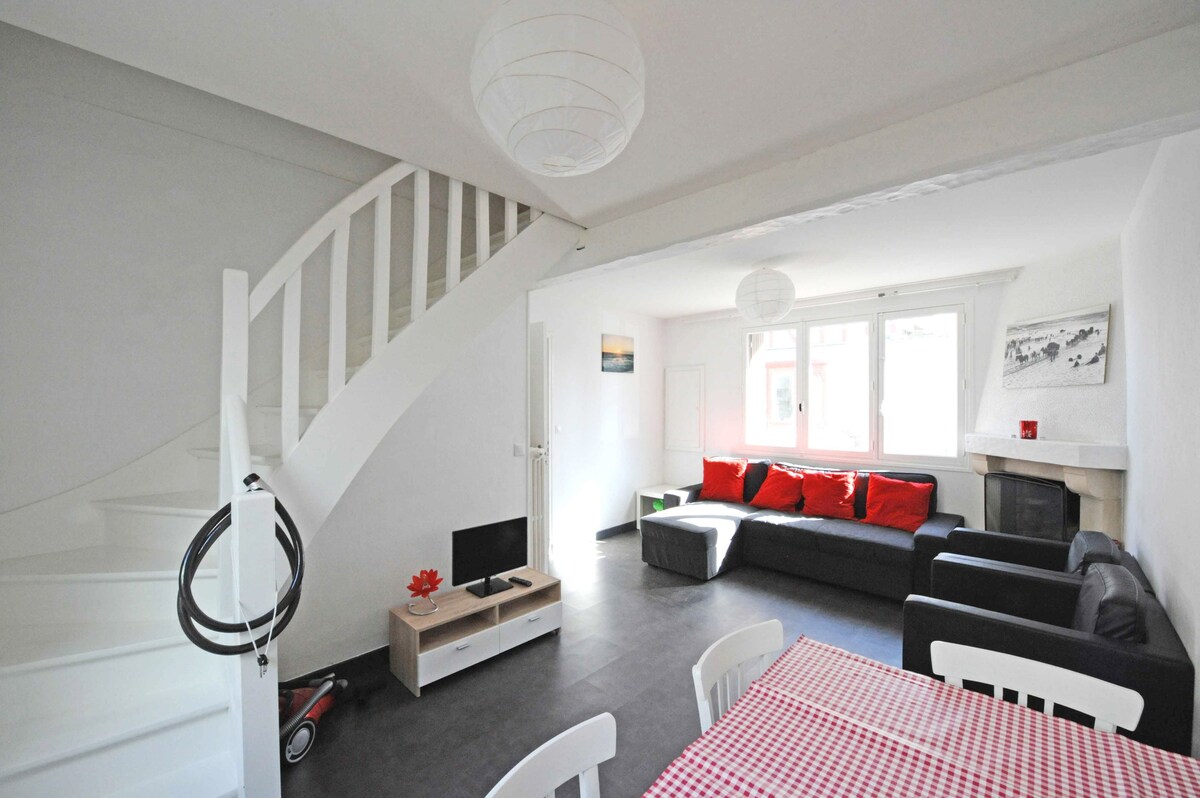 Loue petite maison située dans le centre de la station, à 200 m de la plage et à proximité directe des commerces (pharmacie, commerces alimentaire, bars, restaurants...). Le logement comprend : salon (TV) / cuisine équipée / chambre à l'étage (TV) ; salle d'eau (douche/lavabo/WC) ; une terrasse extérieure (avec table de jardin). Parking gratuit en face de la maison. Dans la station : tous commerces, plage, casino, golf, centre équestre, école de voile..... (les animaux ne sont pas acceptés)