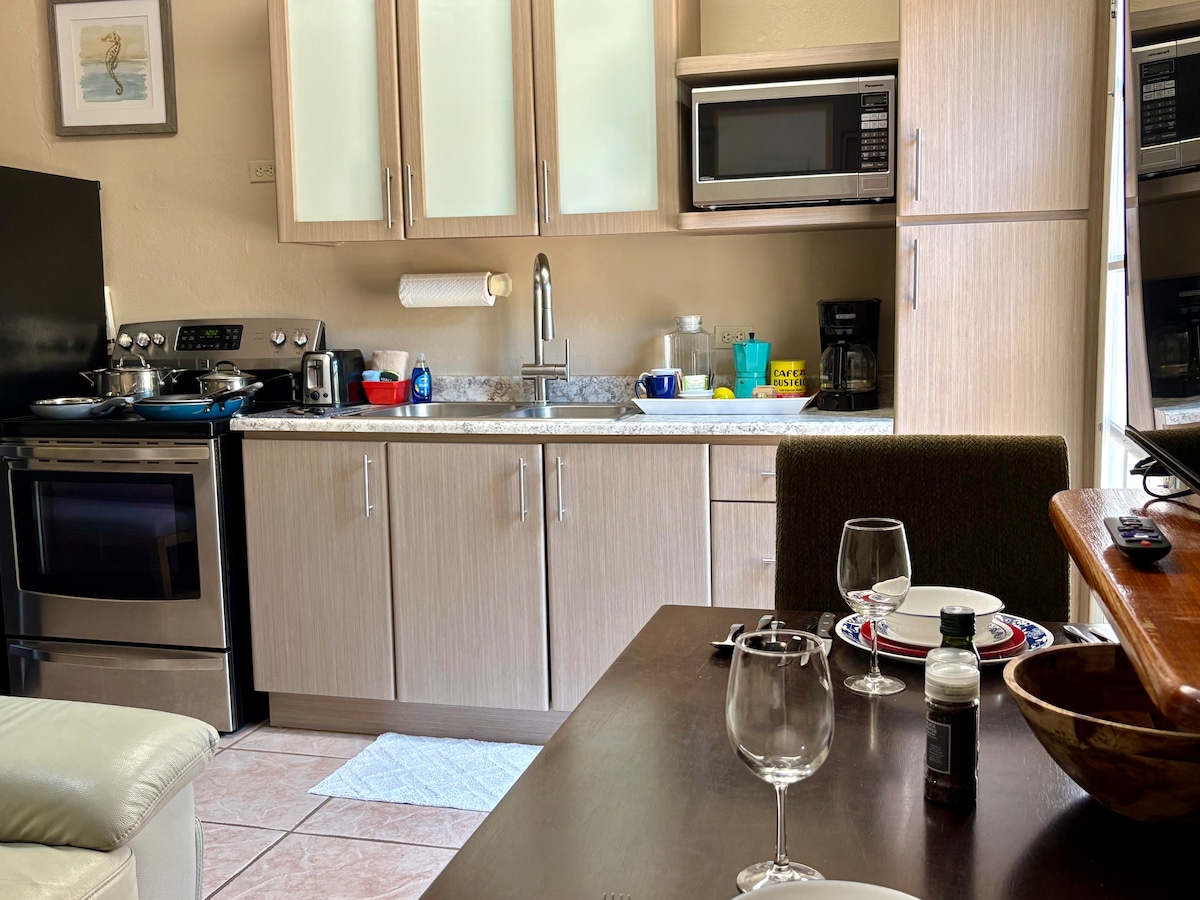 Գտնվում է աշխատանքի և Շաքս Բիչի միջև ։ Քայլեք մեր մասնավոր ճանապարհով դեպի օվկիանոս, որտեղ լողափը շատ հանգիստ է: Հիանալի սերֆինգ, ստորջրյա զբոսանք և ուրուր ՝ հյուսիսափայլի երկայնքով ։ Առանձին, հսկվող, ցանկապատված և շատ կայանատեղեր ։ Պեդրոյի արմավենիների C ստուդիան ունի օդորակիչ, առաստաղի օդափոխիչներ, էկրանավորված դռներ և պատուհաններ ՝ Կարիբյան ծովի քամին վայելելու համար ։ Սալիկապատ հատակներ և քայլուղիներ: Serta Queen չափի ներքնակներ և սմարթ հեռուստացույց: Լիովին կահավորված խոհանոցներ, որտեղ կարող եք սնվել կամ ճաշել տեղական ռեստորաններում: