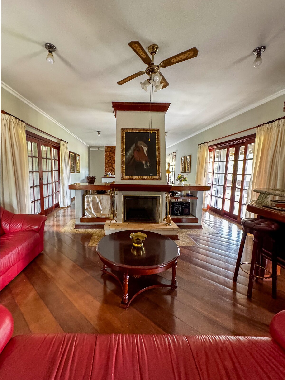 Casa 100% térrea, 4 quartos com ar, Piscina e 5 vagas de garagem. Jardim cercado, ideal para pets, escritório reservado com Wifi e ar condicionado. Piscina integrada ao espaço Goumet com churrasqueira e forno de pizza. Cozinha completa com Forno elétrico, microondas, fogão e geladeira. Sala de Tv, Lareira e Copa. Acomodação tranquila e arborizada para relaxar com a família e amigos. Venha desfrutar do ar puro de Aguas de Santa Barbara e renovar suas energias em um empreendimento Resort.