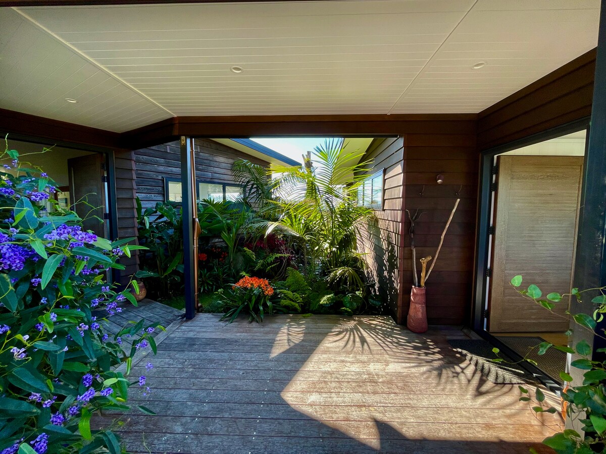 Ամբողջ հյուրերի առանձնաբաժին ԱՐԵՒԱԴԱՐՁԱՅԻՆ ԴՐԱԽՏԸ MANGAWHAI - ում 4 հյուր, 2 ննջասենյակ, առանձին սպասասրահ, Ձեզ կտրամադրվի հյուրերի առանձնաբաժինը, և այն կկիսեք միայն նրանց հետ, ում հետ ճանապարհորդում եք: Հանգստացեք Luxury - ում: Վայելեք արևադարձային այգիները, խաղացեք péailandque, croquet, tiki toss կամ եգիպտացորենի փոսը մարգագետնային մեծ տարածքում: Հանգիստ կարող եք լողալ, պառկել արևի տակ կամ սուզվել սպա լողավազանի մեջ: Օգտվեք բացօթյա զվարճանքի ապաստարաններից ՝ մի բաժակ գինով և նիբբլներով նստելու և հանգստանալու համար: