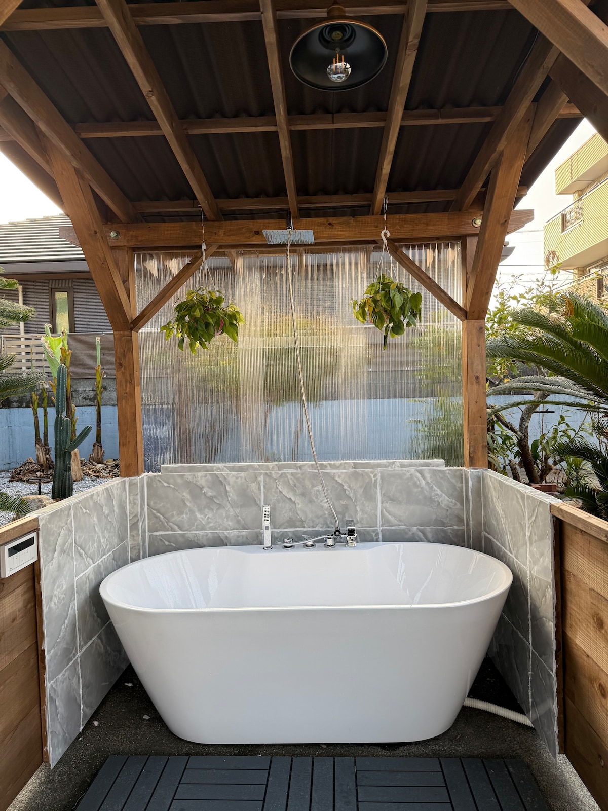 Համանա լճին և Կանցանջի օնսենին շատ մոտ է։ Մայրուղու մուտքն ընդամենը 3 րոպե է մեքենայով ։ Այն պետք է շատ հարմար լինի ուղևորվել դեպի Համանակո և Համամացու քաղաք ։ Կարող եք մնալ ձեր ընտանիքի կամ ընկերների հետ: Ավտոտնակը շատ հարմար է երեկույթ կազմակերպելու, մեքենա կամ մոտոցիկլ կայանելու համար։ Առավելագույն տարողունակությունը 6 հոգի է, բայց օպտիմալ թիվը 4 հոգի է։ Այն կարող է բավականին փոքր թվալ 6 հոգու համար, ուստի խնդրում ենք ամրագրել միայն այն դեպքում, եթե դա ձեզ հարմար է։ Տարածքը հարմարավետ է, այնպես որ կարող եք լավ քնել ։