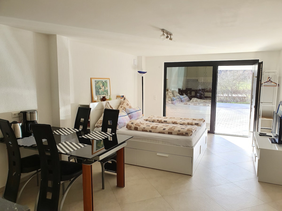 1 -2 հոգու համար նախատեսված հարմարավետ կահավորված բնակարանը գտնվում է մեր ընտանեկան տան առաջին հարկում ։ Այն ունի 1 ննջասենյակ ՝ մահճակալով և 1 թախտով հյուրասենյակում, ճաշասեղան և 2 աթոռ ։ Այն նաև առաջարկում է լիովին կահավորված խոհանոցիկ ։ Լոգասենյակն ունի պատուհան: Բնակարանը գտնվում է քաղաքի ծայրամասում ՝ Վեյլ դեր Ստադտ արվարձանում ։ Այստեղ դուք կգտնեք խաղաղություն և հանգիստ: Իդել բիզնես ուղևորների կամ հեծանվային զբոսանքների և արշավների համար ։