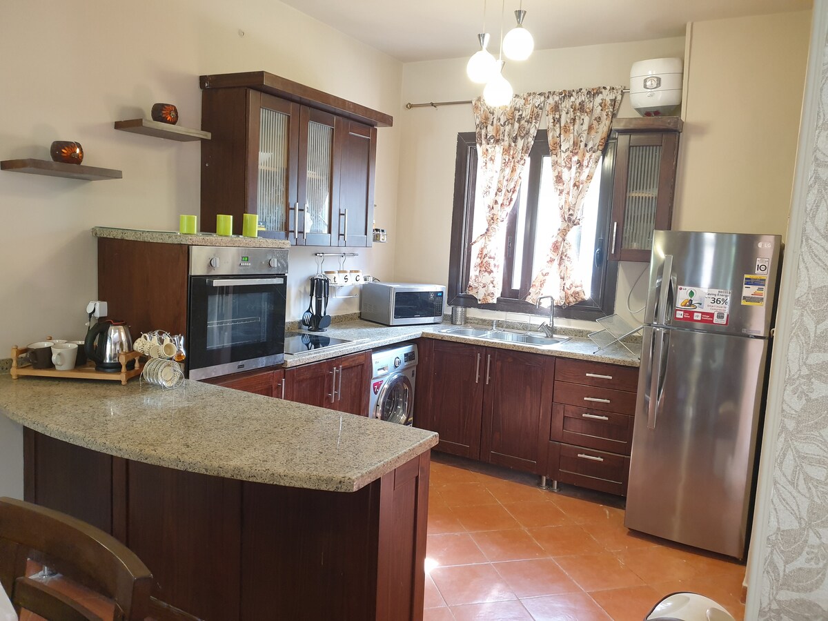 Մոռացեք ձեր հոգսերն այս ընդարձակ և խաղաղ տարածքում: Հանգստացեք ընդարձակ առանձին վիլլայում, որը գտնվում է Ռաս Սուդրի ամենամեծ լողափից մի քանի քայլ հեռավորության վրա։ Այն ունի 3 օդորակվող ննջասենյակ, մեծ մասնավոր լողավազան և 600 մ² այգի, ուստի կատարյալ է ընտանիքների կամ ընկերների համար։ Վայելեք խաղաղ միջավայր, կառավարության տրամադրած մաքուր ջուր (ոչ թե բաքերից), լիովին կահավորված խոհանոց՝ սառույց պատրաստող սարքով, և շուրջօրյա սպասարկում անվտանգ, էլեգանտ տարածքում։ Հարմարավետություն, առանձնություն և զվարճանք՝ ձեր իդեալական հանգիստը սպասում է ձեզ։
