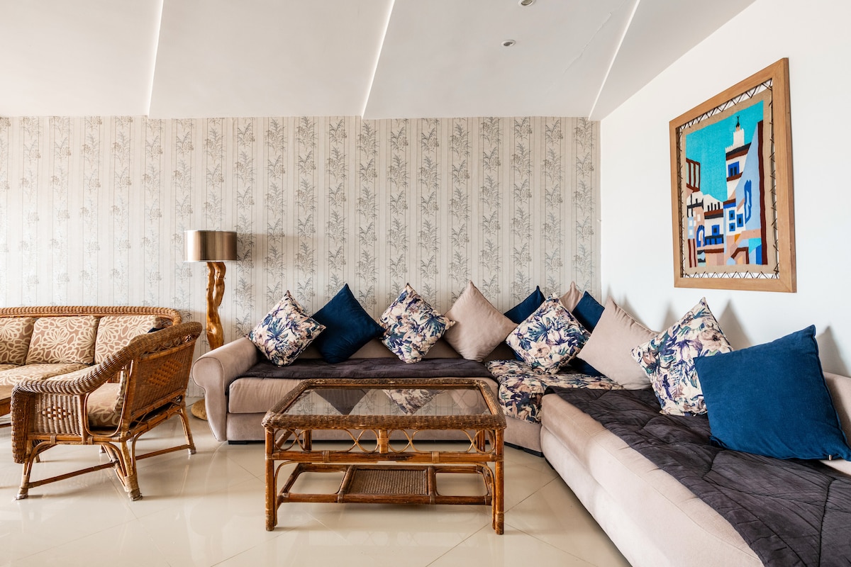 Բացահայտեք մեր շքեղ բնակարանը Bouznika Costabeach - ում, որը կատարյալ է ընտանիքների կամ բիզնես ուղևորների համար: Ժամանակակից 2 ննջասենյակով այս տունն ունի նորաոճ հյուրասենյակ ՝ երեք հեռուստացույցով, օպտիկամանրաթելային Wi - Fi - ով, աշխատանքային տարածքով և լիովին կահավորված խոհանոցով ։ Վայելեք բնակության վայրի երկու կտուրները, օդորակիչն ու հարմարությունները ՝ լողավազանով, կայանատեղիով և շուրջօրյա անվտանգությամբ ։ Ոտքով կարճ ճանապարհ դեպի լողափ և տեղական տեսարժան վայրեր ։ Ամրագրեք հիանալի տուն ։