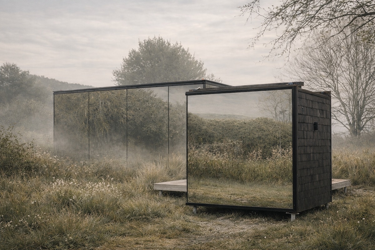 A reflective architectural retreat just off the Route de Champagne. The Cave is one of two mirrored cabins at Sûr Jumigny, created in collaboration with ÖÖD. Set within a historic village, it sits beside a 350-year-old wine cellar and includes a private sauna and elevated terrace above the cellar roof. The mirrored façade reflects stone, sky and meadow, offering a calm, design-led base for exploring nearby vineyards and countryside.