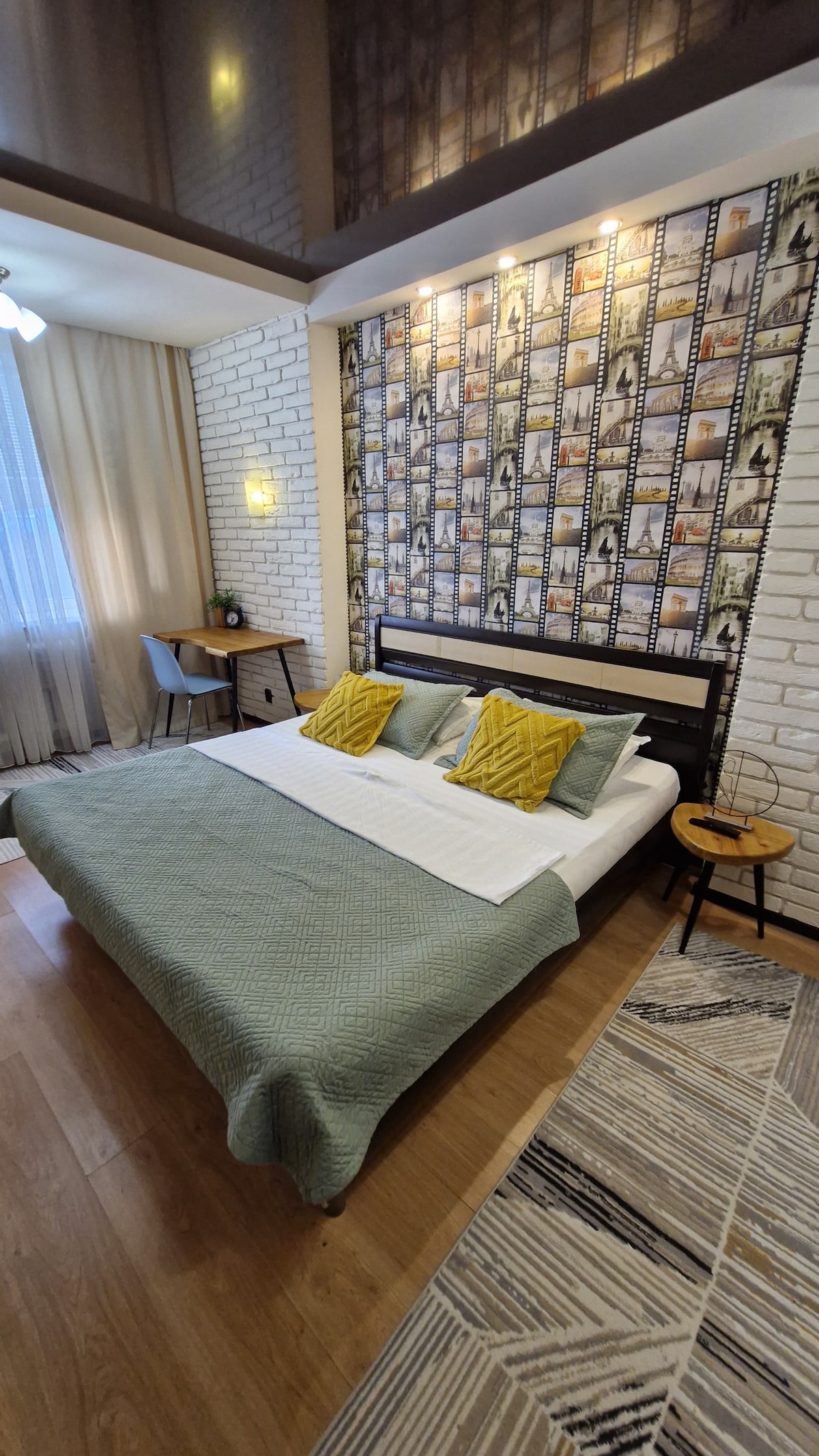 Перезагрузитесь в этом спокойном и стильном месте.Современные апартаменты с дизайнерским ремонтом и продуманной атмосферой. Просторная спальня с удобной кроватью и затемняющими шторами, стильная ванная с мраморной плиткой и стиральной машиной, уютная кухня с барной зоной и современной техникой. Большие зеркала с подсветкой и тёплые деревянные акценты создают ощущение уюта. Отличное расположение рядом с ресторанами, магазинами и транспортом — идеально для отдыха и работы.