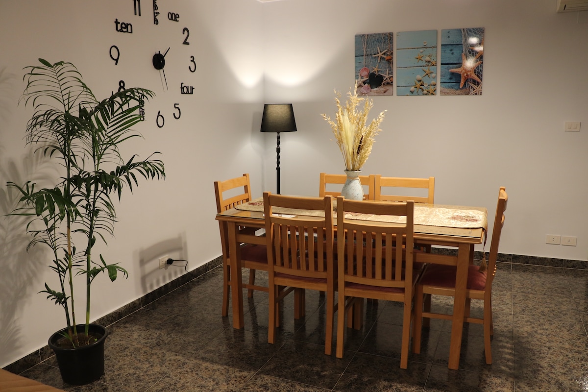 Հեշտացրեք մեր ընդարձակ և յուրահատուկ ծովափնյա հանգիստը ։ Մեր 3 սենյականոց բնակարանը հարմարավետորեն տեղավորում է մինչև 8 հյուր: - Մեծ կտուր (եզակի seaview) - 3 ննջասենյակ, 4 մահճակալ (2 երկտեղանի, 2 թագուհի) - 2 մեծ բազմոց բազմոց - 1 զուգարանով սանհանգույց - Քայլելով ցնցուղարան - 2 օդորակիչով սենյակ - Լիովին կահավորված բաց խոհանոց - Բար - 8 տեղանոց ճաշասեղան - Լվացքի մեքենա - չորանոց - Սպասք լվացող մեքենա - Գոլորշու հագուստ արդուկ - 2 խելացի հեռուստացույցներ «Netflix» հավելվածը - Անվճար Wi - Fi - անվճար կայանատեղի հաստատությունում