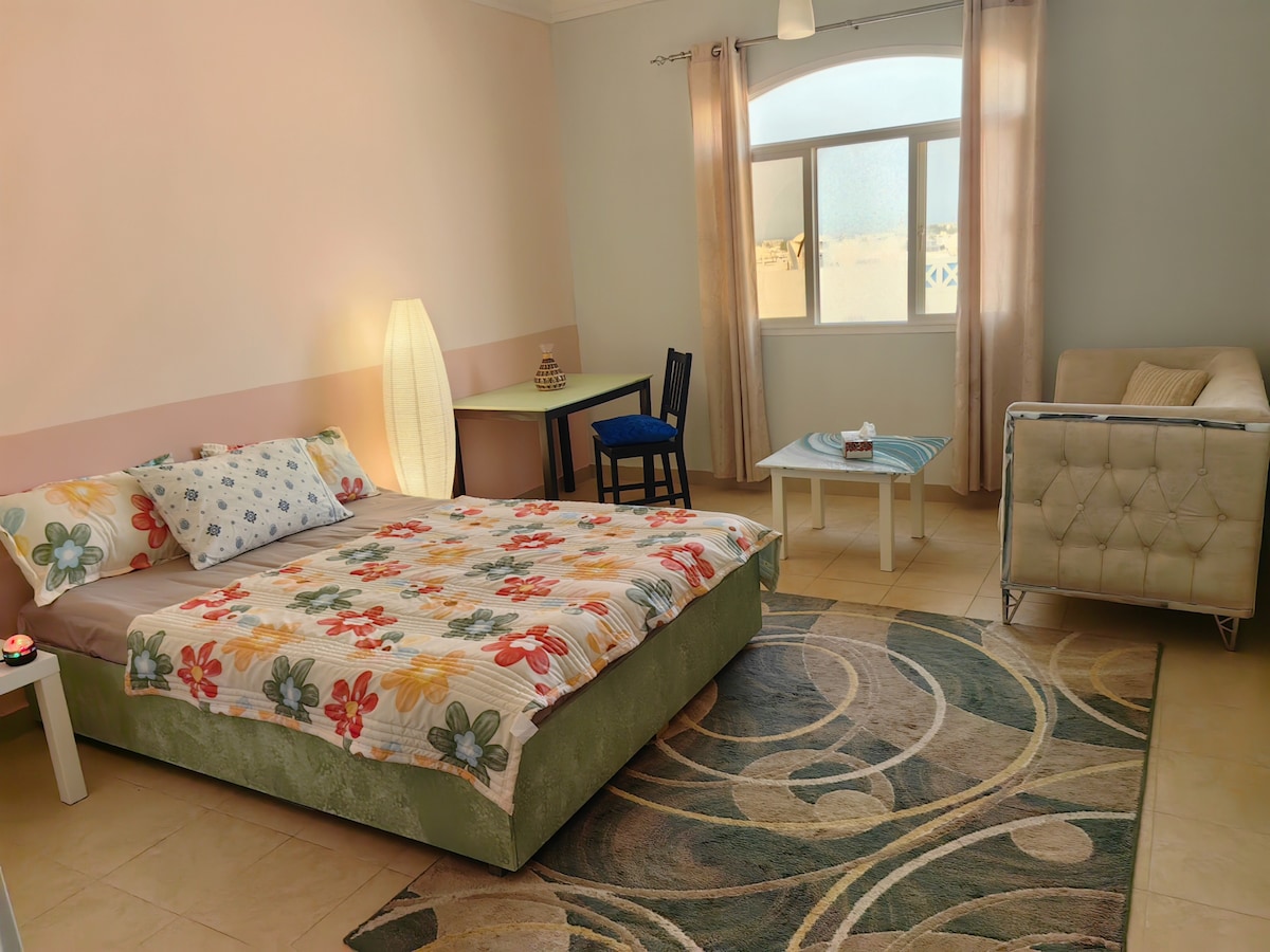 Ձեր հանգստի փախուստը սկսվում է այստեղից ։ Լիովին սպասարկվող (1 BR) բնակարան Մասկատ ծովածոցի սրտում: Յուրահատուկ է զույգերի և ընտանիքների համար, որոնք փնտրում են հանգիստ հանգիստ և յուրահատուկ փորձառություն ։ Վայելեք գիշերային հիանալի քունը երկտեղանի մահճակալում և երկու լրիվ չափի բազմոց - մահճակալ: շքեղություն ներսի ցնցուղում կամ թարմացրեք զգայարանները ձեր մեծ մասնավոր մասնավոր ջակուզիում: Անվերջանալի միջոցառումներ, որոնք հասանելի են MuscatBay տարածքում, օլիմպիական լողավազանում, անհավանական արշավային տարածքներում և մասնավոր լողափում ։