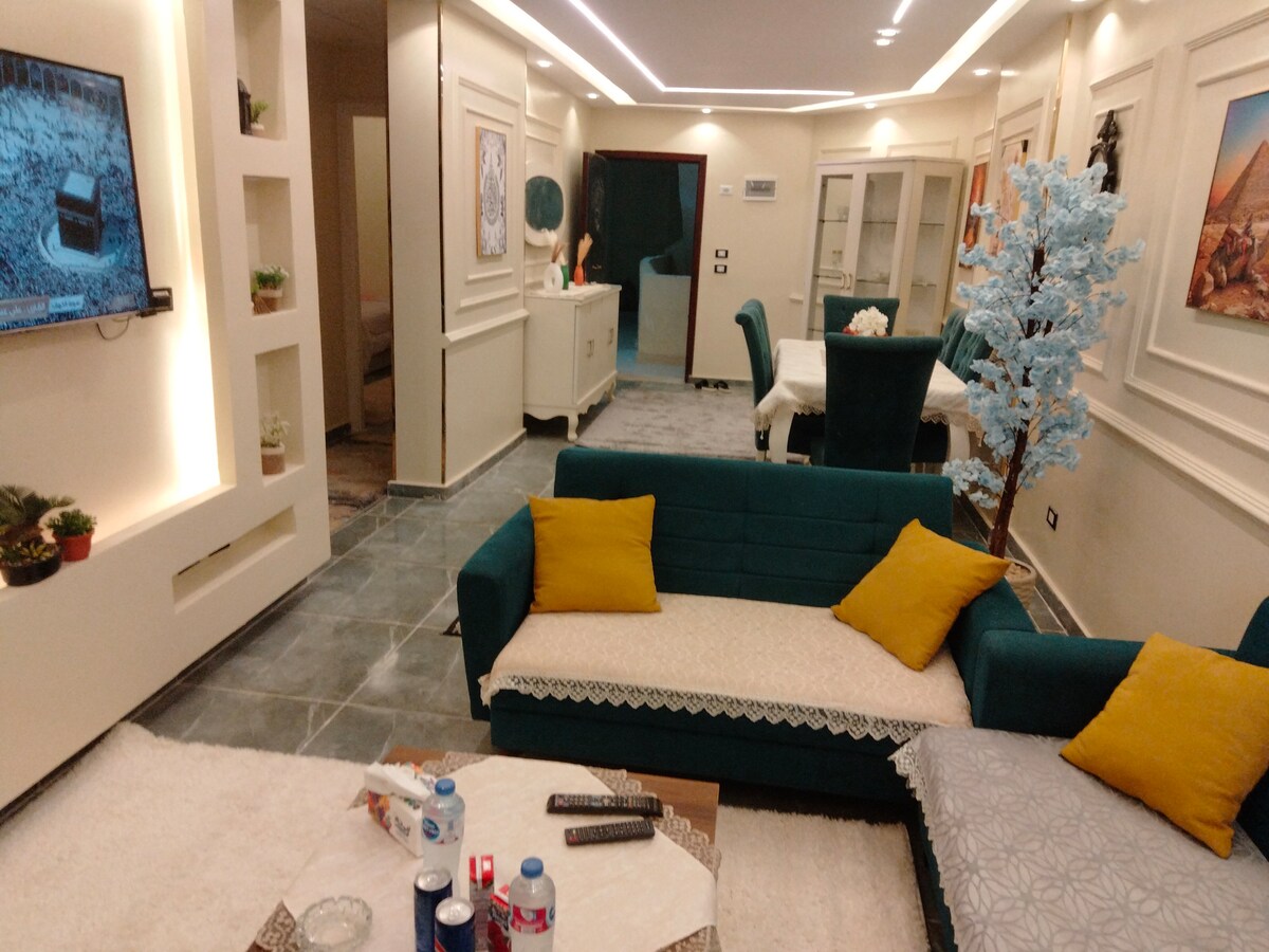 Ընտանեկան բնակարան Սան Ստեֆանո շրջանում ՝ Ալեքսանդրիայի սրտում, Միջերկրական ծովի տեսարանով : Բնակարանը գտնվում է Սան Ստեֆանո մոլից, չորս սեզոնով հյուրանոցից և Սթարբաքսից 3 րոպե հեռավորության վրա: Ֆաթալլայից 2 րոպե հեռավորության վրա գտնվող հայտնի մթերային խանութից, որը բացվում է շուրջօրյա: Շենքն ունի անվտանգություն 24 ժամվա ընթացքում: Բնակարանը բաղկացած է 2 Վարպետի ննջասենյակներից, որոնցից յուրաքանչյուրն ունի առանձին լոգասենյակ , ընդունարան , խոհանոց և մեծ 10 մետր պատշգամբ ՝ հիանալի ծովային տեսարանով: Բնակարանն ունի 3 օդորակիչ ։ Wi - Fi , հեռուստացույց ։ Շենքն ունի ավտոկայանատեղի ՝ վճարովի