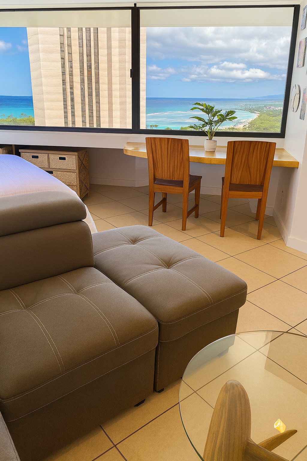King Size 4 Post Bed, Sunrise on the surf, sunset on the beach, dinner at the top of Waikiki! Վայելեք Ալա Վայի ջրանցքի, Կոոլաուլեռների և Ալոհա Դրայվի զբոսայգու տեսարանները ընդարձակ լանաիսից, այդ թվում ՝ ձեր սեփականը: Հագեցած է A/C - ով, սմարթ հեռուստացույցով, միկրոալիքային վառարանով և ամբողջական խոհանոցով, որը կօգնի ձեր հանգիստը դարձնել Վայկիկիում կախարդական ։ Խաղային աթոռ ՝ կարգավորելի բարձրության գրասեղանով, դիֆուզորով ։ Սահմանափակ կայանատեղին երբեմն հասանելի է շենքում ՝ լրացուցիչ 20 ԱՄՆ դոլար/մեկ գիշերվա համար ։ Հարցրեք ինձ հետ ազատ ամսաթվերի համար: