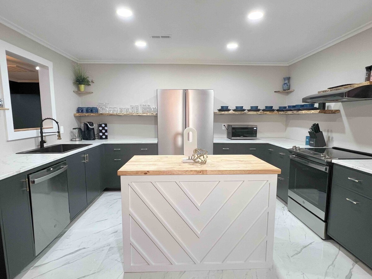 Modern 4BR Retreat • Games • Fire Pit • Movie Room