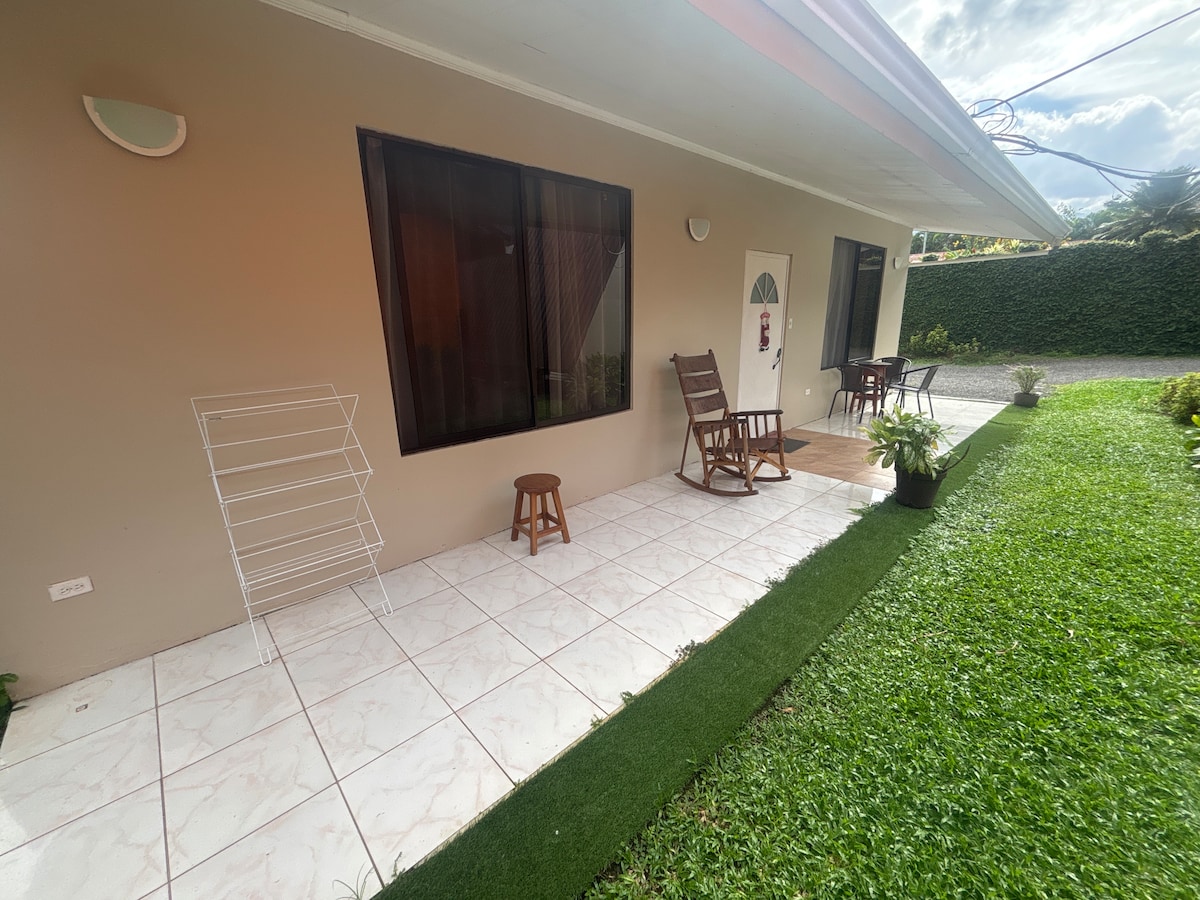 Այս վիլլան Արենալ հրաբուխը տեսնելու լավագույն տարբերակն է ։ Ֆորտունայի կենտրոնից մոտ 3 -5 րոպե հեռավորության վրա գտնվող տունը գտնվում է բնությամբ շրջապատված հանգիստ վայրում ։ Այցելուները կվայելեն թաղամասի կյանքը ՝ հարևանների և իրենց տնային կենդանիների հետ: Տարածքն ընդարձակ է, ունի անհավանական պատիո ՝ հանգստանալու և ընտանիքի և ընկերների հետ անմոռանալի պահեր անցկացնելու համար ։ Այն ունի parqueo para 5 autos, A/C յուրաքանչյուր սենյակում: Այն անվտանգ է և լավ կահավորված անզուգական արձակուրդի համար ։