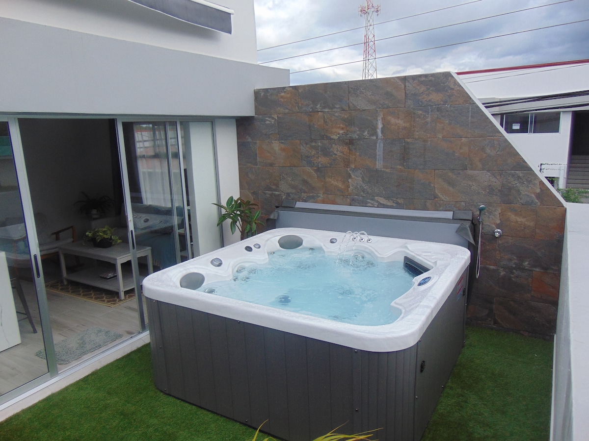 Բարի գալուստ մեր ստուդիայի բնակարան, որը գտնվում է ապահով 5 - բնակարանային շենքում ։ Գտնվելով անվտանգ տարածքում ՝ այն մոտ է բոլոր հարմարություններին ։ Մեքենայով ընդամենը 7 րոպե մինչև SJO օդանավակայան և սուպերմարկետ ՝ ընդամենը 90 մ հեռավորության վրա ։ Տեղում լվացքի հարմարությունները և ընդհանուր տարածքը ապահովում են լրացուցիչ հարմարավետություն ։ Վայելեք գերարագ ինտերնետը և բարձրակարգ Wi - Fi - ը ։ Բացի այդ, Walmart - ը, City Mall - ը և Plaza Real - ը մեքենայով 4 -5 րոպեի ընթացքում են ։