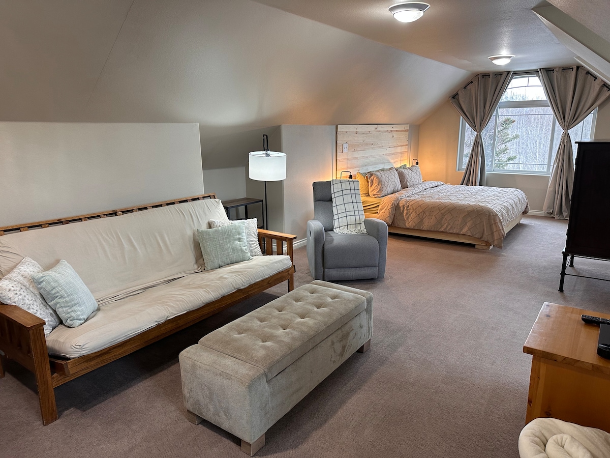 Wake up to Pioneer Peak views in this private log studio tucked into the Butte. Perfect for couples or solo travelers looking for quiet, comfort, and quick access to Palmer, hiking, and fishing. It’s a great location for all that Butte, Alaska has to offer, including the famous Reindeer Farm just down the road. It’s a comfy studio with kitchenette and refrigerator. Perfect for an adventurous getaway in Alaska! PLEASE NOTE: THERE IS A SECONDARY UPSTAIRS UNIT ABOVE THIS STUDIO.