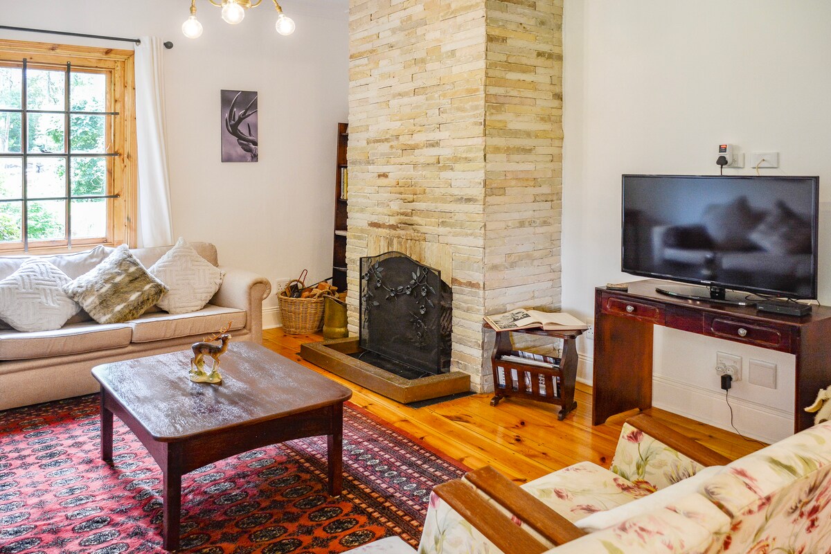 Enjoy peaceful but sophisticated living on a tranquil working farm with cattle, sheep, chickens and ducks. Walk in the indigenous forests, run, ride bikes, paddle our kayaks on the dam or just sit next to your fireplace and relax. Entire four en-suite bedroom home with ample living and entertaining spaces for exclusive use. A lovely family stay venue. Price is for 4 people. Additional guests charged extra. Maximum 8 guests allowed. NB Large duck pond 20 M from the Farmhouse.