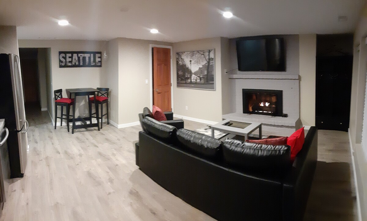 Հանգստացեք այս թարմ և ընդարձակ հարկաբաժնում, ապա սկսեք ձեր առավոտը տաք և թարմ աղացած սուրճով (կապույտ շիշ) կամ տաք թեյով: Դուք կարող եք WFHere! Մենք պարզապես ավելացրել է մշտական գրասեղան, 34 դյույմ մոնիտոր, եւ ինքնավար Ergonomic Office ամբիոն. Ուսումնասիրեք ձեր շրջակայքը. - Խուանիտա լողափ ՝ 8 րոպե մեքենայով - Բելվյու հրապարակ 15 րոպե մեքենայով - Սիեթլի կենտրոն 24 րոպե մեքենայով Այս տարածքում չկա խոհանոց, միայն միկրոալիքային վառարան, տաք ջրի թեյնիկ և սառնարան: