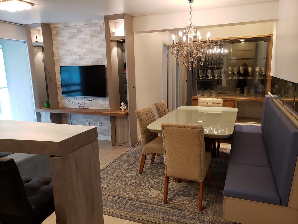 Լաունջ բնակարան, որը գտնվում է Բրավա Բիչից 5 րոպե և Balneário Camboriú - ից 10 րոպե հեռավորության վրա: Տեղադրությունը կատարյալ է: Լողափից ընդամենը 5 թաղամաս հեռավորության վրա ։ Փակեք բոլոր երեկույթներն ու ռեստորանները ։ Կոնդոմինիում ՝ ամբողջական ինֆրա, լողավազան, մարզասրահ, շոգեբաղնիք և 5 բարբեքյու: Բնակարանն ունի լեռնային ջակուզի ՝ հիդրո և քրոմոթերապիայով: Իդեալական է հանգստանալու կամ ռոմանտիկ ժամանակ անցկացնելու համար: Հյուրասենյակում կա 58 'խելացի հեռուստացույց, իսկ ննջասենյակում ՝ 40 '': Ամբողջական խոհանոց: Մեքենան լվանում և չորանում է: Ձեզ դուր կգա այս վայրը: