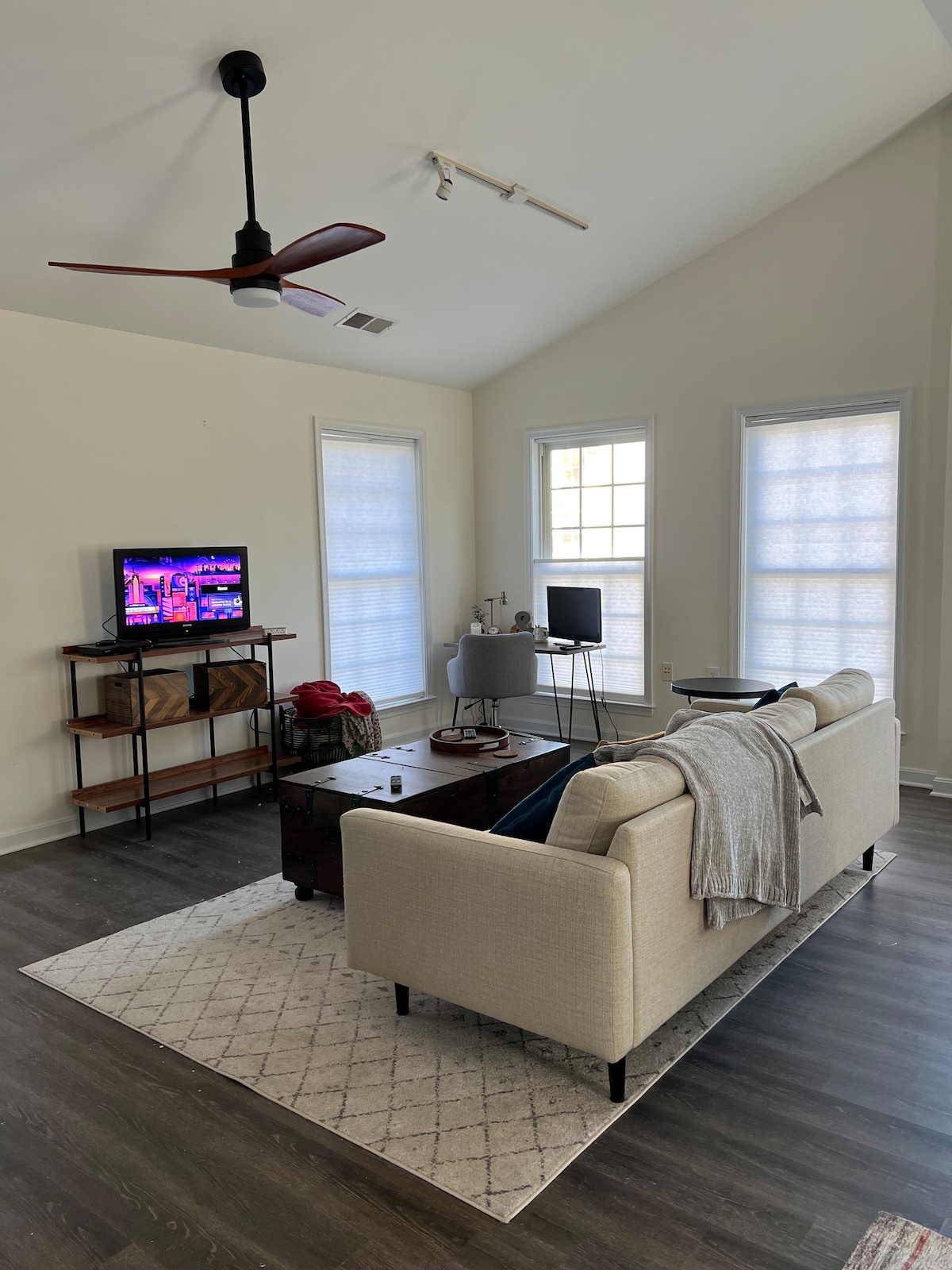 Open floor plan studio with parking & easy access to Old Town Alexandria, Nat’l Harbor, and DC via public transit, or with your own car. Located in a quiet neighborhood, the suite house has its own outdoor deck with a private seating & dining area. Inside is just over 500 sqft and has a large couch, twin and queen size beds, kitchenette, full bath with tub and desk and chair for remote workers. Additional inflatable twin mattress available by request. Well behaved and house trained pets welcome.