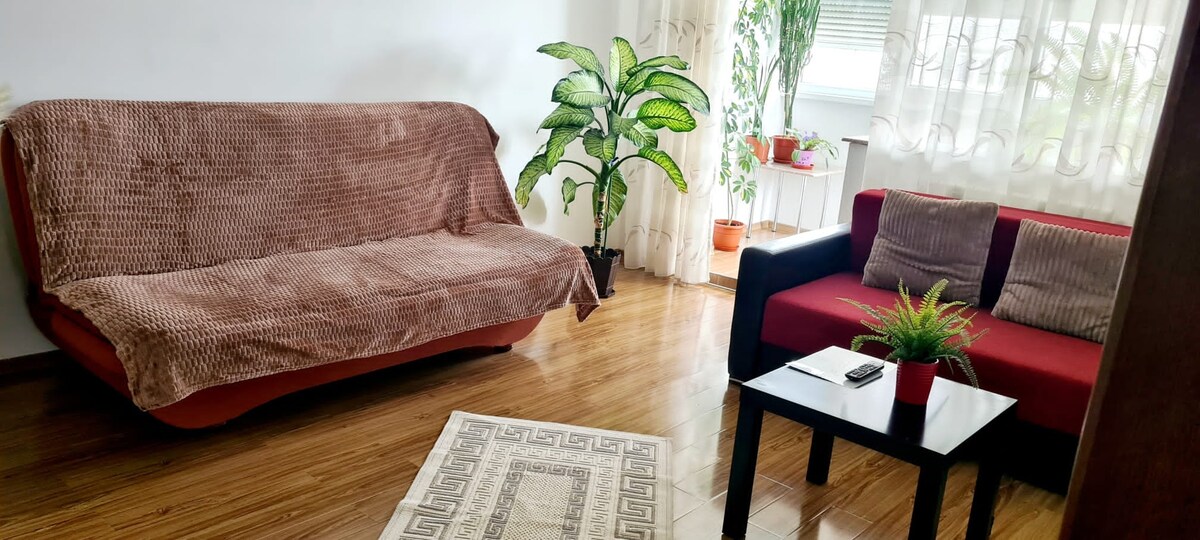 Situated in the vicinity of Piata Muncii (10 min walk), few blocks away from Decebal Bdv and nearby Unirii Square, our two rooms apartment can be the right option for your stay in our lovely city. Our apartment can provide you: - 1 bedroom with 1 double bed; - 1 living area with 1 sofa bed; - TV cable (Netflix available on smartTV), free WI-FI Internet, A/C; - a fully equipped kitchen, washing machine, iron, iron board, hairdryer. We are more than happy to be part of your journey.
