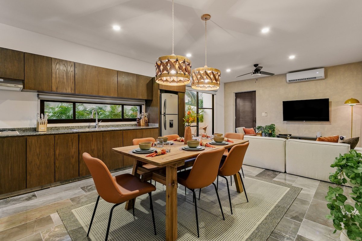 Տունը, որը իդեալական է հարմարավետություն և առանձնություն փնտրող ընտանիքների համար, գտնվում է անվտանգ, փակ բնակելի համայնքում, որտեղ մուտքը վերահսկվում է, և Կանկունի միջազգային օդանավակայանից ընդամենը 10 րոպե հեռավորության վրա է։ Կանկունի կենտրոնը գտնվում է 15 րոպե հեռավորության վրա, հյուրանոցային գոտին և լողափերը՝ 15–20 րոպե հեռավորության վրա, իսկ Պուերտո Մորելոսը՝ 20 րոպե հեռավորության վրա։ Սուպերմարկետները, դեղատները և ռեստորանները գտնվում են մոտավորապես 10 րոպե հեռավորության վրա մեքենայով։ Խաղաղ և հարմարավետ վայր, որը իդեալական է ընտանիքների, զույգերի և փոքր խմբերի համար։