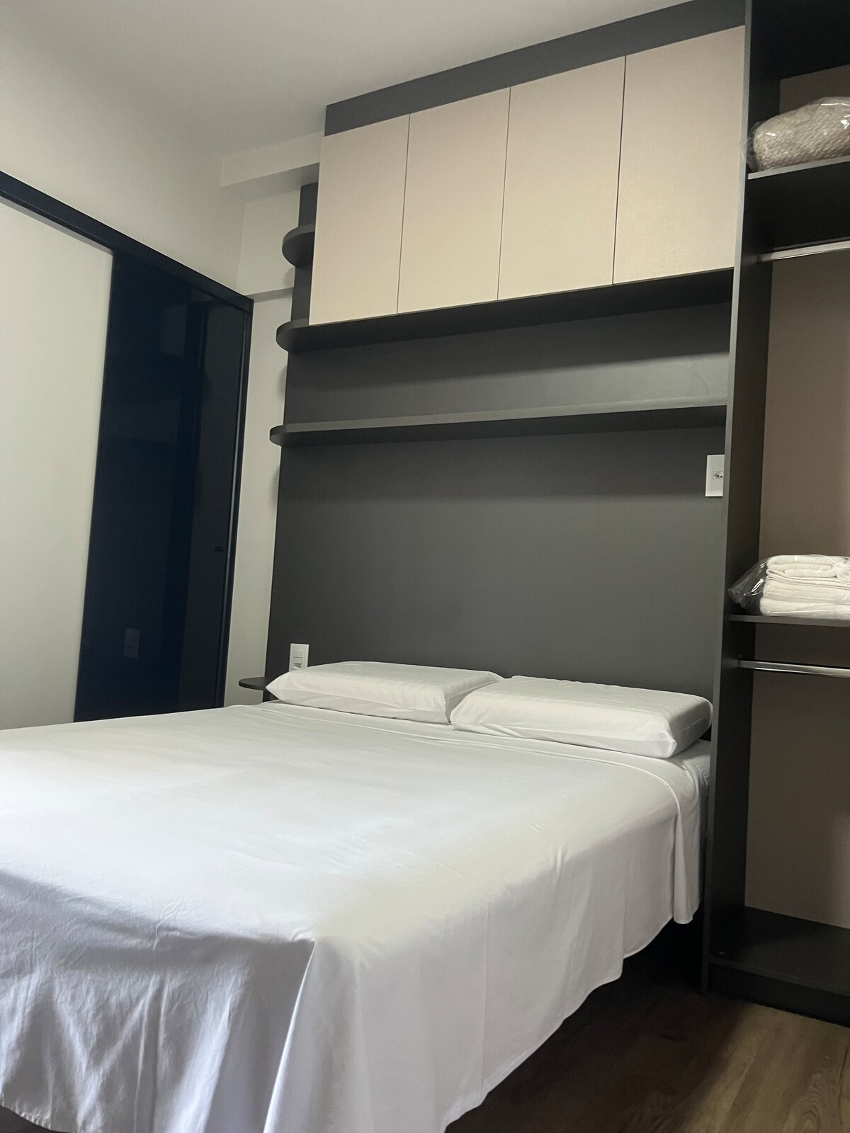 Espaço calmo, aconchegante e completo no coração da nossa cidade. Montado com muito carinho especialmente pensado na funcionalidade e conforto, para você se sentir em casa. Comodidades: •Wi-Fi de qualidade • Cozinha equipada • Áreas comum (lavanderia, piscina, coworking e academia) • Cama de casal e roupa de cama • Banheiro com toalhas e sabonete • Tv 42” • Cafeteira Sem garagem no prédio, tem estacionamento pago próximo e a avenida tem lugares permitidos estacionar.