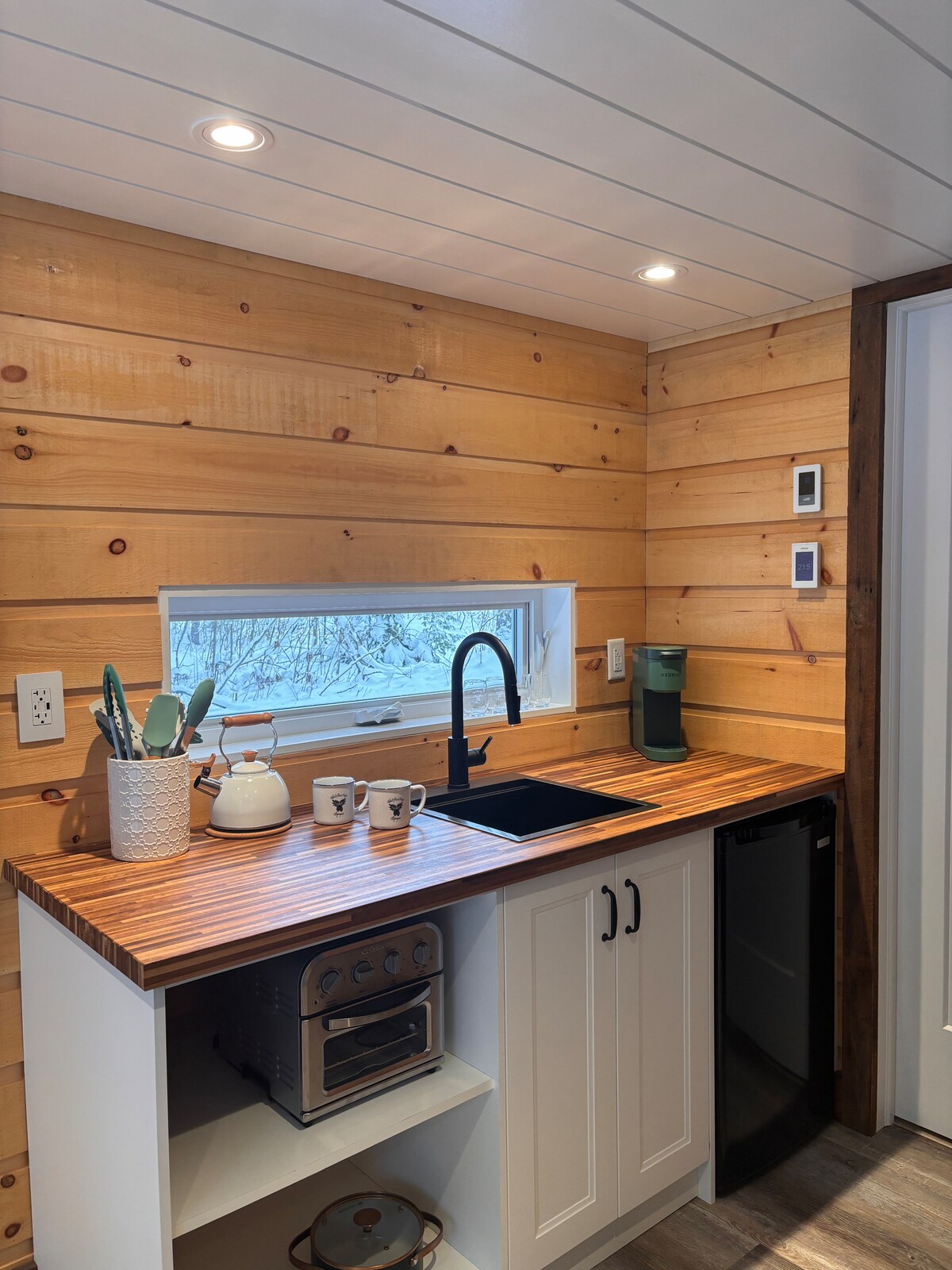 1 ննջասենյակով բնակարան՝ կինգ-մահճակալով, հյուրասենյակ՝ թախտով և երկտեղանի բազմոցով, լոգասենյակ և խոհանոցիկ։ Օդով ֆրայզեր, սալօջախ երկու կրակարանով, միկրոալիքային վառարան, սառնարան։ Գտնվում է Ալգոնկուին զբոսայգու արևելյան դարպասից մի քանի րոպե հեռավորության վրա։ Թեև ջրի վրա չէ, բայց Գալիրի լճի գեղեցիկ արևմտյան տեսարանն է բացվում։ Կա Wi-Fi։ Խորովածի համար նախատեսված խոհանոց՝ բացօթյա խոհարարության համար։ Մթերային խանութը և LCBO-ն մոտիկ են։ Վայելեք Ալգոնքին զբոսայգին ձեր այցի ընթացքում տրամադրվող անվճար Ontario Parks Pass-ի միջոցով