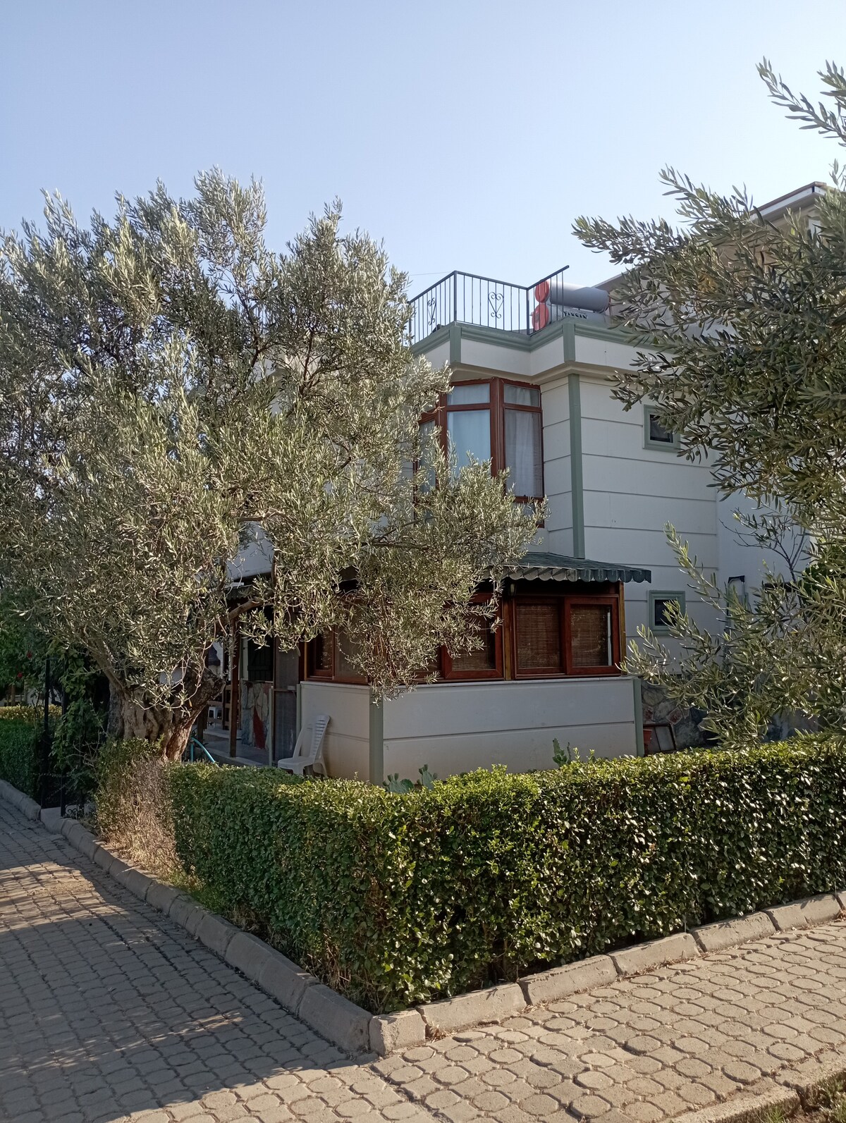 Villamız çok nezih site içinde , denize 2. Evdir . İçinde zeytin ağacı olan geniş bahçesi deniz manzaralıdır ,evin üç tarafında terasları vardır , kuş sesleri içinde uyanıp ,önündeki iskeleden yada siteye ait diğer plajda denize girebilirsiniz . sosyal tesisler bulunmakta. Cunda’ya ve Ayvalığa araba ile oniki dakika . Evin önünden Ayvalık ve diğer bölgelere dolmuşlar geçmektedir . Evin hemen yanında Carrefour vardır . Bu müstakil ikiz villamızda huzurun ve tatilin tadını çıkarın.