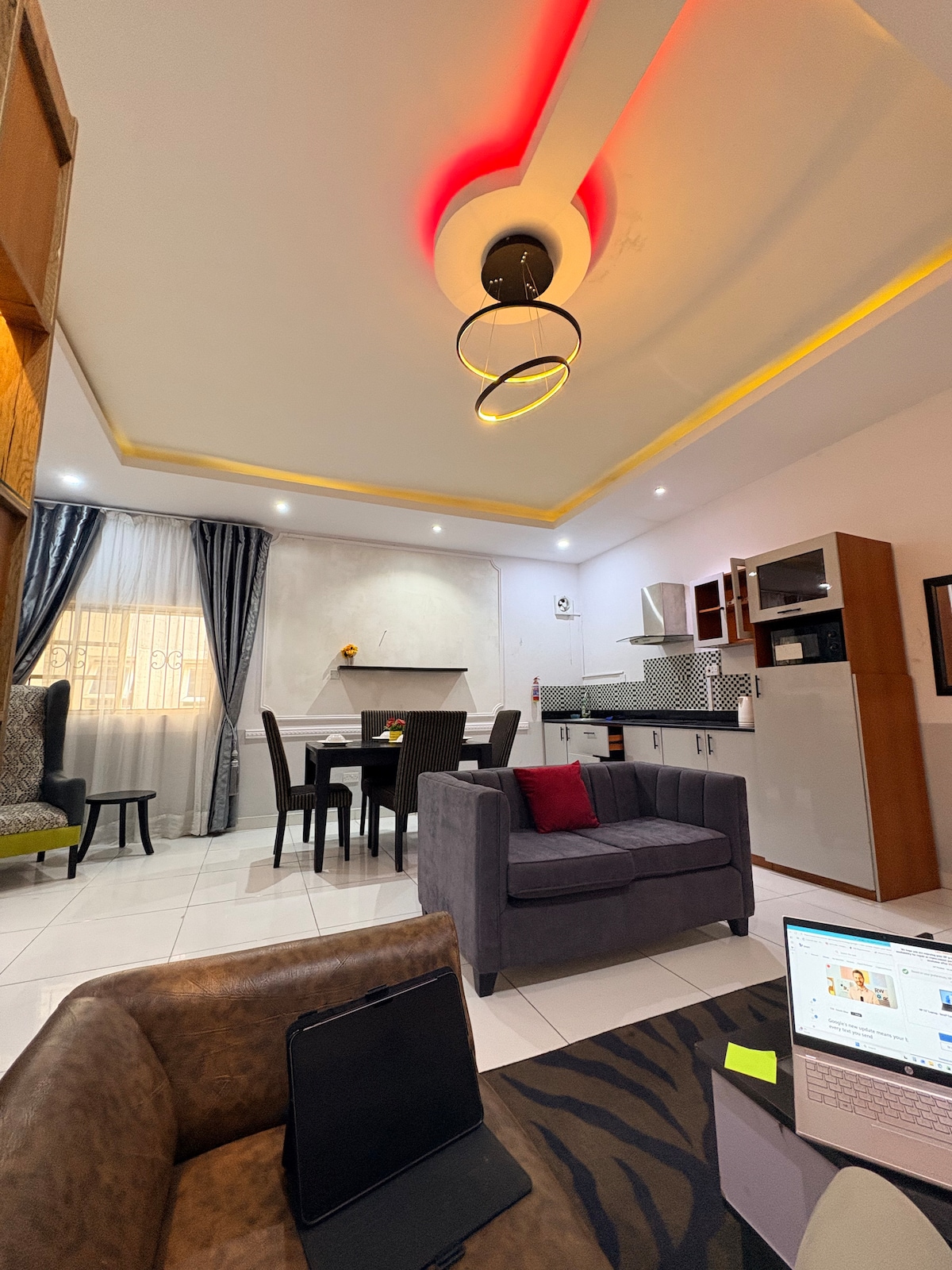 Սա շքեղ EnSuite 1 ննջասենյակով բնակարան է Լեկկիի 1 - ին փուլի սրտում ՝ հյուրերի զուգարանակոնքով ։ Բնակարանը գտնվում է բոլոր հարմարությունների և խանութների մոտակայքում ։ Այն ունի լիովին կահավորված խոհանոց ՝ ամբողջական պարագաներով և պարագաներով, լվացքի մեքենայով, գերարագ Wi - Fi - ով, բոլոր հեռուստացույցները խելացի են. կարող եք դիտել Netflix - ը, YouTube - ը, dstv - ն և այլն ։ Սա տուն է, որը հեռու է տնից, և մենք ձգտում ենք ապահովել, որ մեր բոլոր հյուրերը վայելեն իրենց հանգիստը և ունենան հիշարժան փորձառություն ՝ մատչելի գներով ։