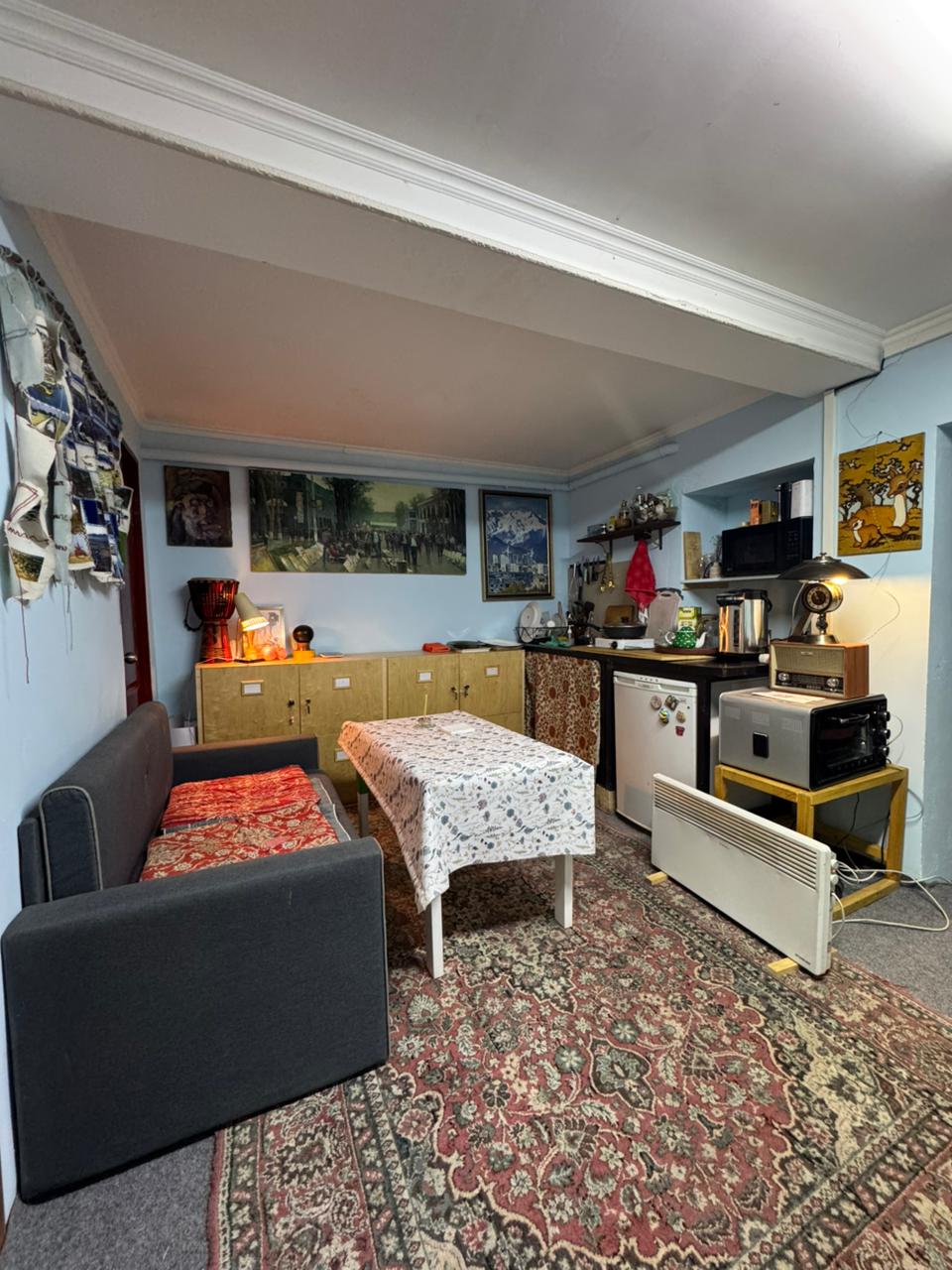 Հարմարավետ արվեստի տուն 1906 թվականից՝ Ալմաթիի կենտրոնում։ Այստեղ պատմությունը հանդիպում է ստեղծագործական մտքին։ Տանը անցկացվում են մտերմիկ մշակութային միջոցառումներ, որոնցում կարող եք մասնակցել և ներս մտնել Ալմաթիի ստեղծագործական միջավայր։ Տանը կան երկտեղանի մահճակալներ, անկողնային սպիտակեղեն, ընդհանուր խոհանոց՝ բուսական անկյունով, ցնցուղ և լվացքի մեքենա։ Տունը ջեռուցվում է իրական սալօջախներով․ կարող եք կրակի մոտ նստել և կարդալ։ Կան պատկերասրահ և ընդհանուր հյուրասենյակ, որոնք զարդարված են նկարներով։ Ամեն ինչ մոտիկ է՝ կենտրոնը, սրճարանը, լեռները։