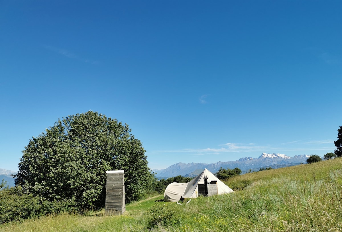 Գտնվում է ֆրանսիական Alpes - Glamping La Source - ի ցնցող ֆոնի վրա, որն առանձնանում է երեք լիովին կահավորված Bell վրաններով և երկու Lotus Belle 'Stargazer' վրաններ, որոնք բույն են դրել 5 ակր գեղեցիկ ծառերի և խոտածածկ տարածքների մեջ, որոնք առաջարկում են հանգստանալու և լիցքաթափվելու անխռով տեղ: Մեր ռեստորանն առաջարկում է սառցե սառը ըմպելիքներ, նախաճաշ և թարմ պատրաստված Երեկոյան ուտեստներ (նախապես ամրագրված) և թարմ եփած հաց ու կրուասաններ, որոնք կարելի է պատվիրել նախորդ գիշերը: